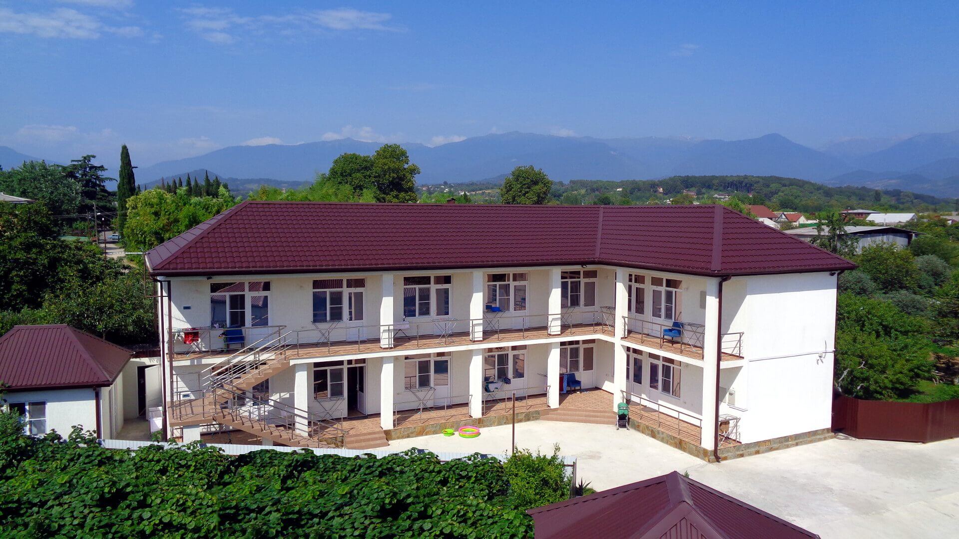 - La pension «Boxwood Grove» est située près de Pitsunda, entourée de forêts d’eucalyptus et de montagnes. Parmi les services offerts par la maison d'hôtes, citons la thérapie par la boue, divers massages et la balnéothérapie. En outre, il possède sa propre plage, piscine, terrains de sport, spa-salon, cafés et restaurants. Le coût du logement, de la nourriture et des soins dans une pension commence à partir de 5 200 roubles pour une journée.