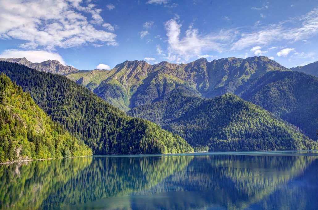 - Le lac de Ritsa est situé à 1000 km d'altitude sur le territoire de la réserve de Ritsinsky.