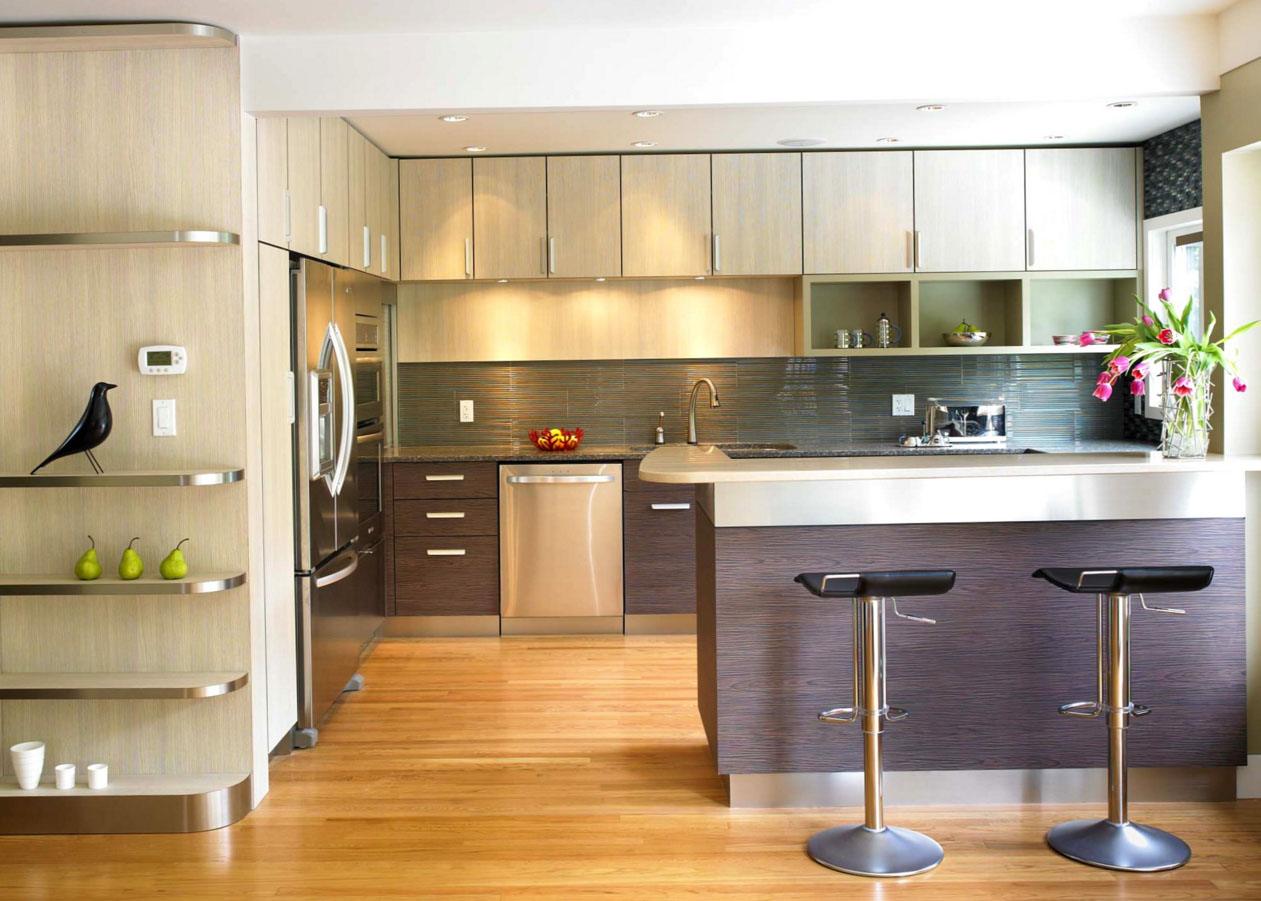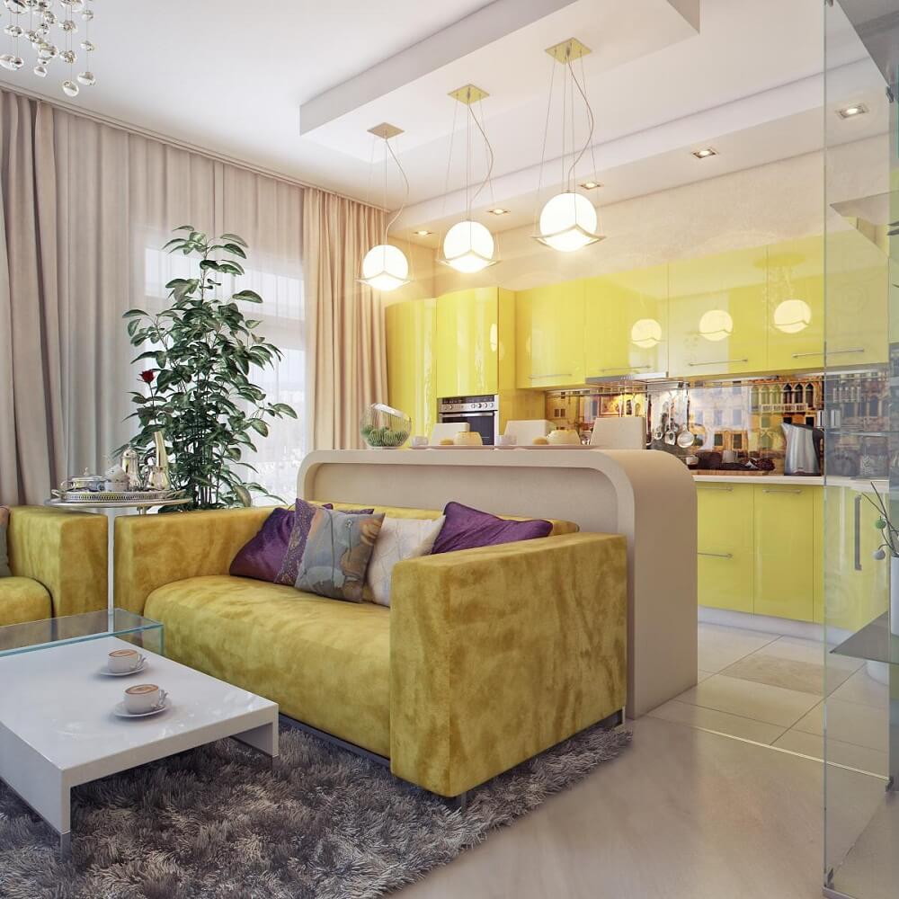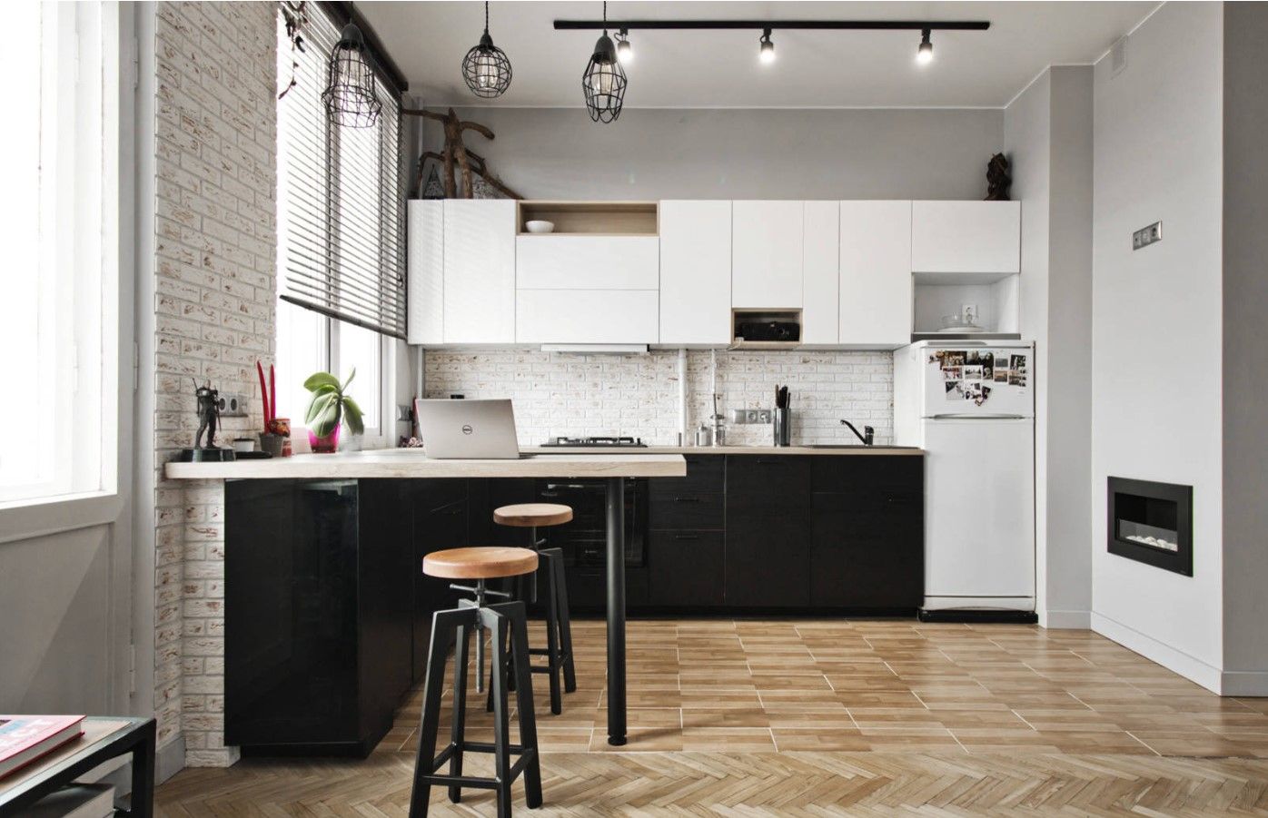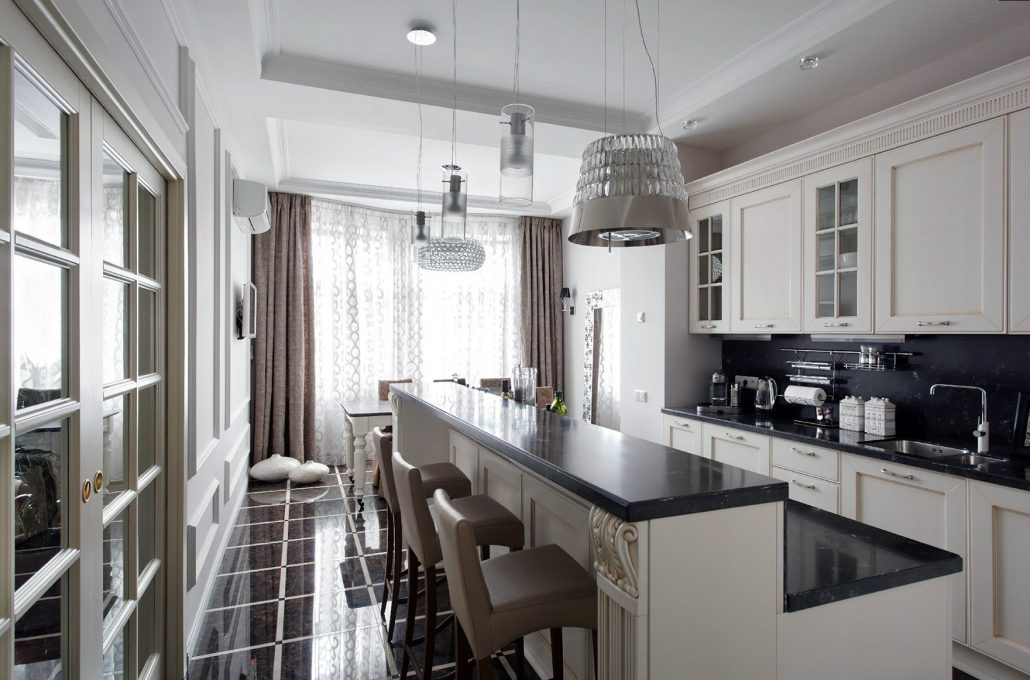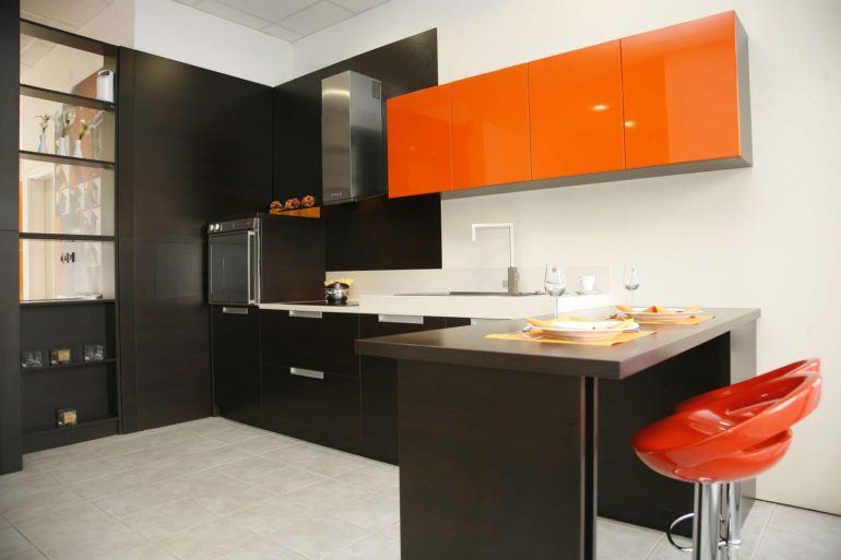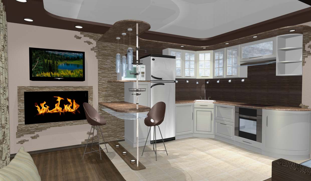 À première vue, la cuisine est de taille modeste, le comptoir de bar sera inapproprié. Cependant, c'est loin d'être le cas, en particulier pour les petites familles.Dans ce cas, il peut être remplacé par une table à manger ou utilisé pour prendre un verre avec des amis.