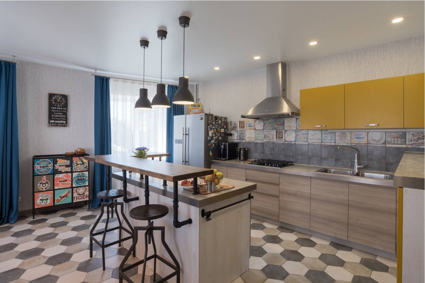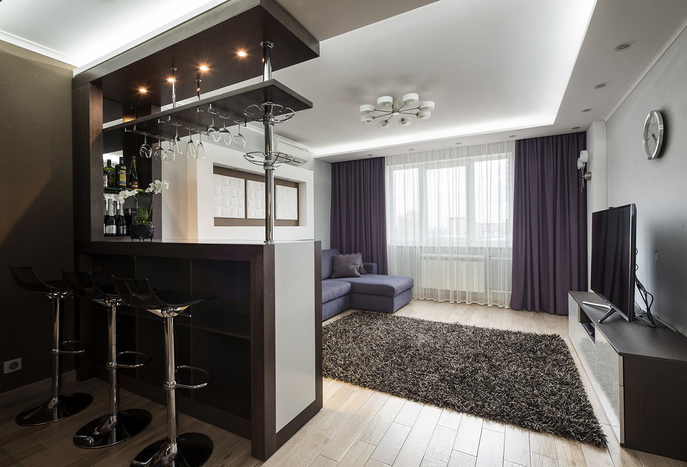 Comptoir de bar dans la cuisine-salle à manger: photos de véritables intérieurs, options de conception et de placement