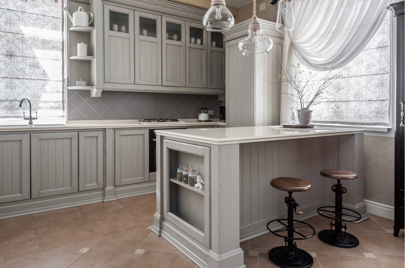 Il se caractérise par sa concision, sa légèreté, sa chaleur et son confort. La conception de la salle dans un style méditerranéen est caractérisée par des matériaux naturels, des couleurs claires avec une petite quantité de couleurs vives. Un comptoir de bar rectangulaire serait approprié ici, ce qui pourrait devenir une surface de travail supplémentaire où un vase de fruits, une boîte à pain ou une théière sera placé.