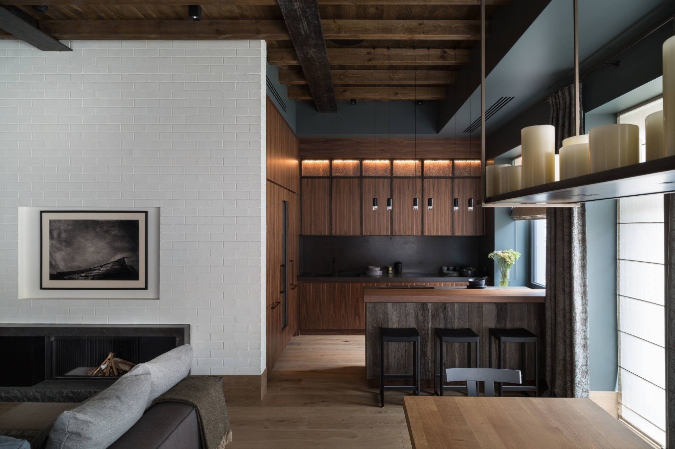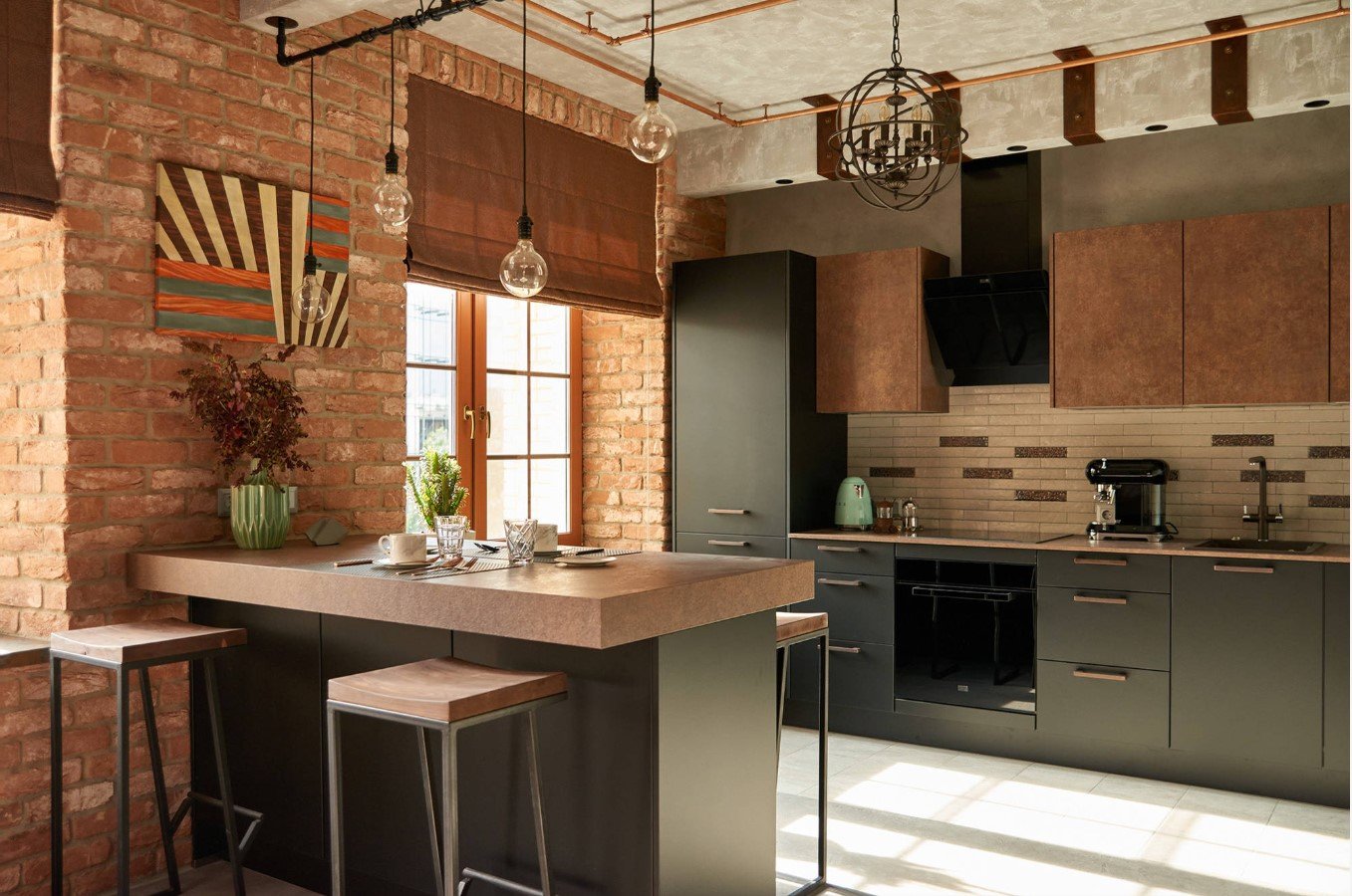 Ce style convient aux propriétaires d'appartements avec de hauts plafonds. Ses caractéristiques distinctives sont la planification ouverte et la combinaison de différentes solutions architecturales. Les plafonds et les murs de cette pièce ont une finition rugueuse. Bien sûr, dans un vaste espace, il est nécessaire d'utiliser le zonage. Ici, avec cette fonction dans la cuisine-salon et le comptoir de bar.