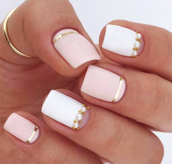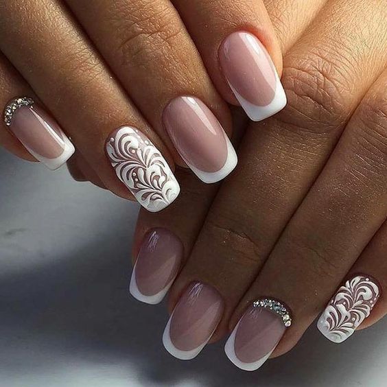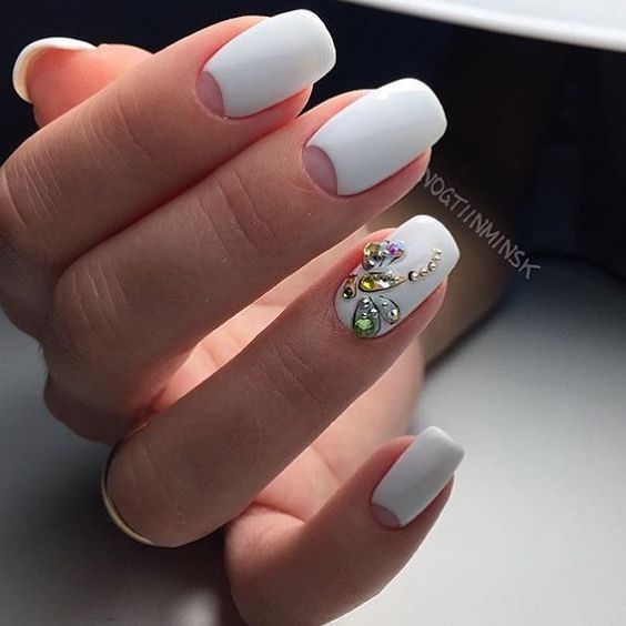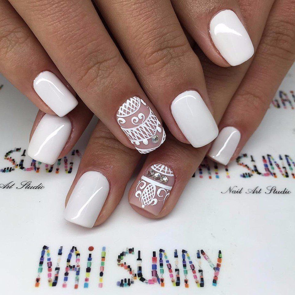 La couleur blanche solide laisse pour la manucure quotidienne. Armez-vous avec d’étonnantes pierres Swarovski, des strass, des paillettes et des ongles «décorés» pour les réunions du soir. La combinaison parfaite de la brillance glamour et du vernis blanc confère à l'image un coût élevé et une sophistication accrue. Naturellement, une manucure aussi entraînante attirera une attention enthousiaste de la part des gens autour de vous. Le nail art blanc est décoré avec des éléments de décoration exquis modestement, mais avec goût. N'essayez pas de «patcher» la totalité du revêtement blanc de l'ongle, il est préférable d'en choisir un.
