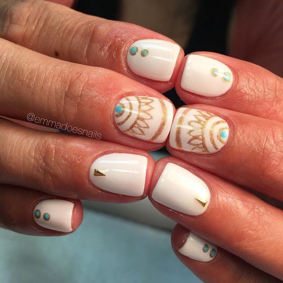 Les ongles, déjà recouverts d'une base blanche comme neige, peuvent être rafraîchis avec des ornements de couleurs vives. En été, des fleurs hétéroclites ornent des fleurs colorées sur un fond blanc. En automne, des motifs jaunes et rouges, en hiver, des pétales de flocons de neige et de guirlandes et, au printemps, des motifs verts s'épanouissent. Et tout cela ensemble fait de l’art à ongles blanc un lieu unique et dynamique. Choisissez un motif coloré et sa nuance correctement, en le combinant avec une garde-robe ou avec le ton du rouge à lèvres. Les femmes riches en émotions, extrêmement sociables, parfois sans retenue et même hostiles, préfèrent les imprimés brillants sur fond blanc. Les motifs colorés sur le vernis blanc, non seulement floraux, mais aussi animaux, sont très populaires.