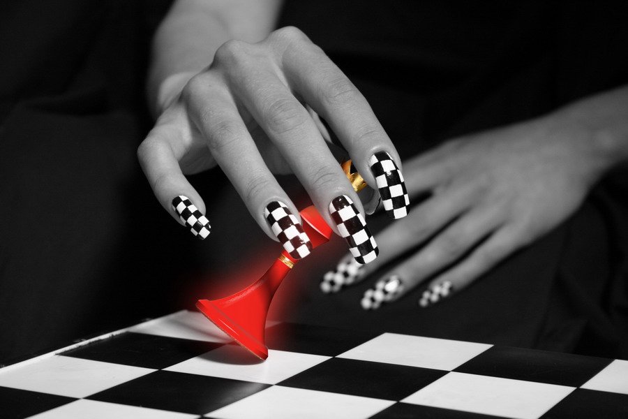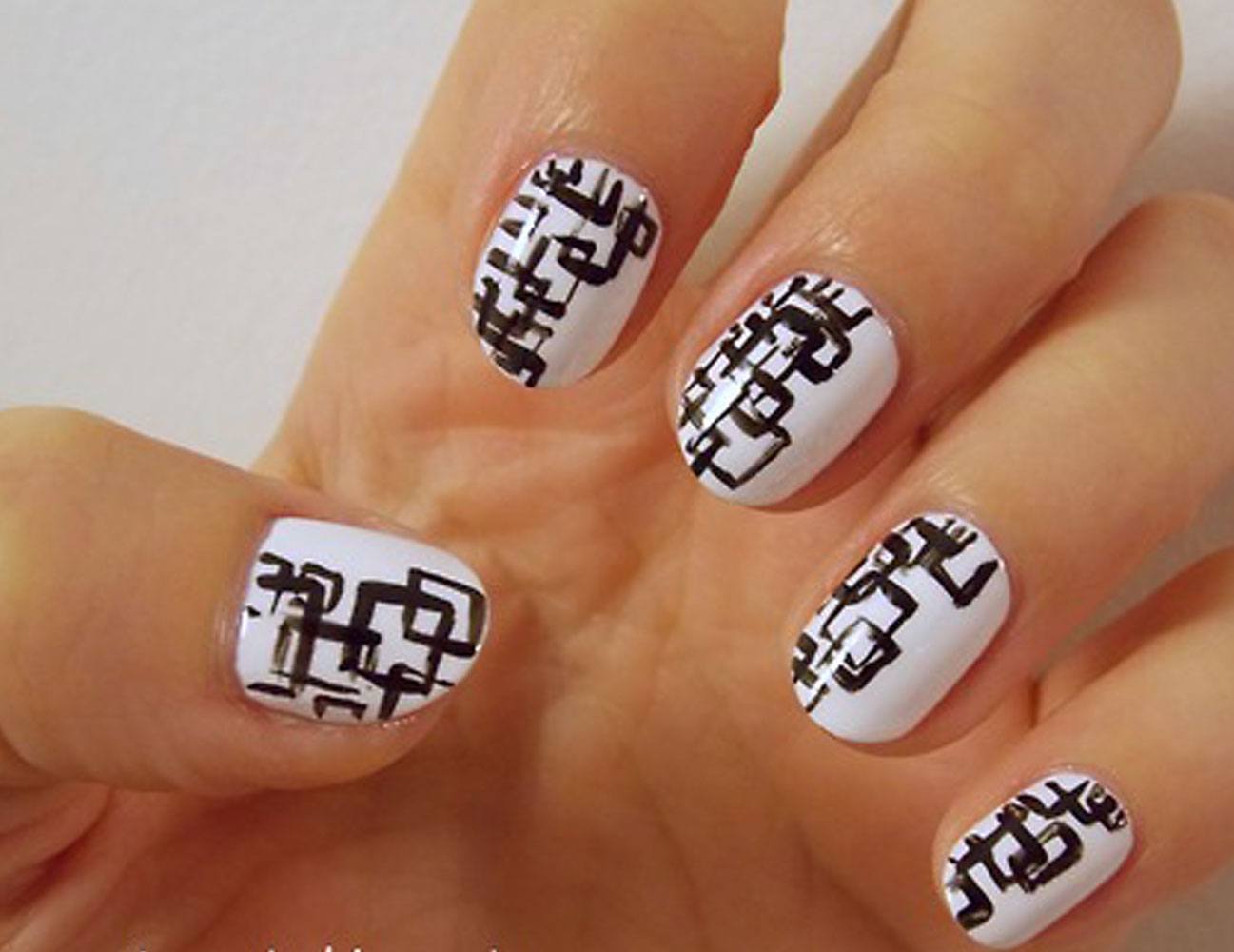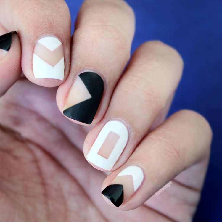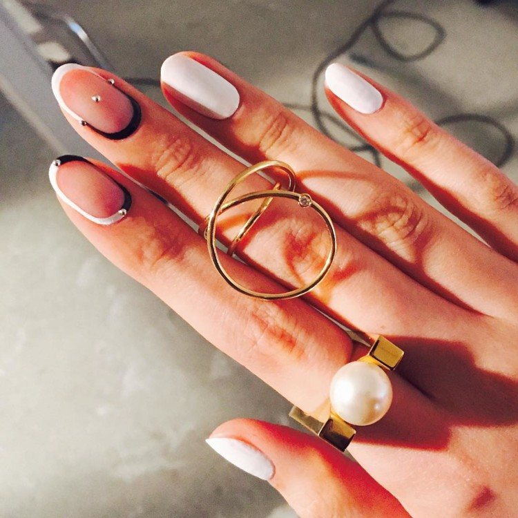 Les stylistes offrent cette saison la combinaison habituelle, mais plutôt inhabituelle, du blanc et du noir. Il existe de nombreuses options exceptionnellement belles pour le nail art noir et blanc, dans lesquelles ces deux couleurs sont combinées dans une manucure parfaite et inimitable. Bien sûr, avec cette conception, le blanc prédomine et le noir ne fait que souligner la beauté et la splendeur de l’art à ongles élégant. L'option avec un échiquier ou des puzzles en noir et blanc convient aux ongles longs. Lorsque vous choisissez une impression géométrique, considérez que cela change visuellement la forme de l'ongle.