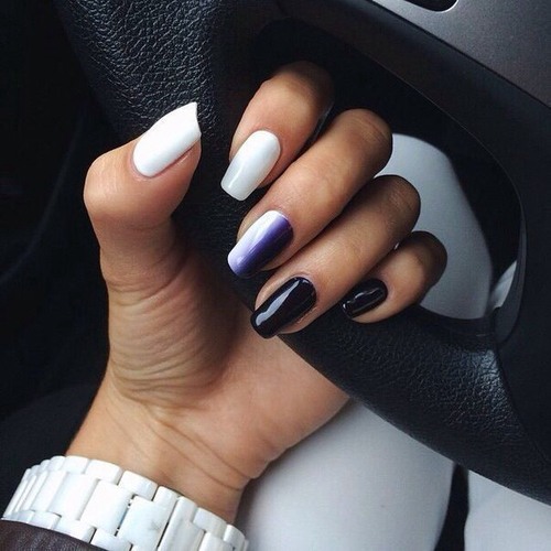 La couleur blanche délicate du vernis est considérée par beaucoup comme universelle, car elle s’harmonise parfaitement avec tout vêtement, quelle que soit la saison. Des expériences avec du vernis blanc peuvent être effectuées à l'infini: tout y est associé. Un motif blanc comme neige peut être ombré en appliquant une teinte d'un autre vernis sur plusieurs ongles, de préférence non crier, mais dans une couleur pastel.
