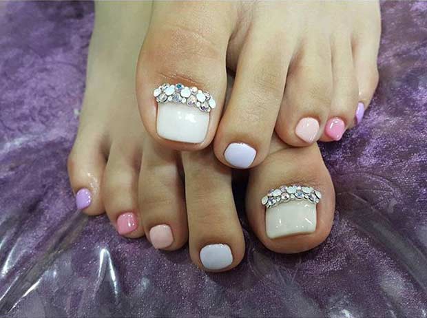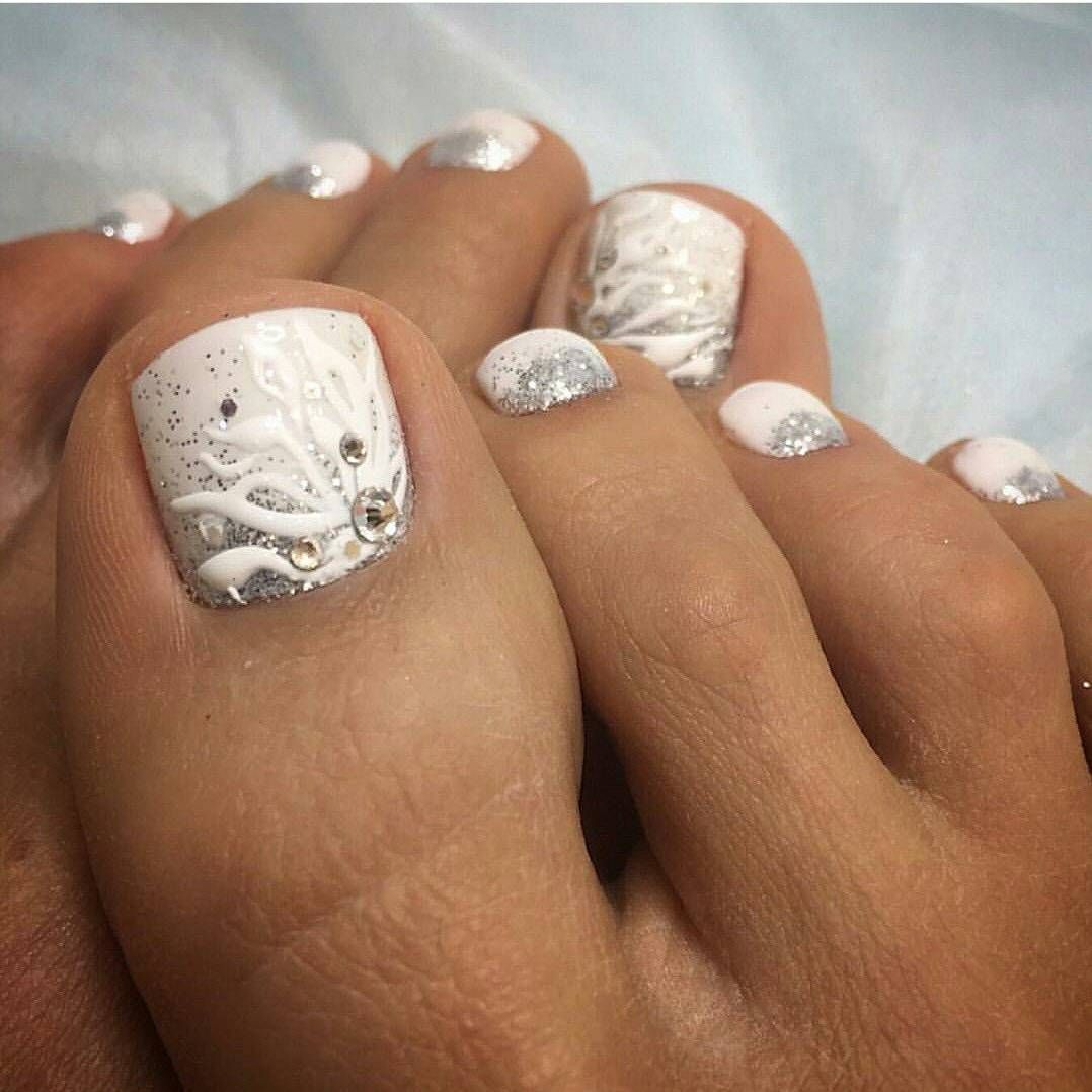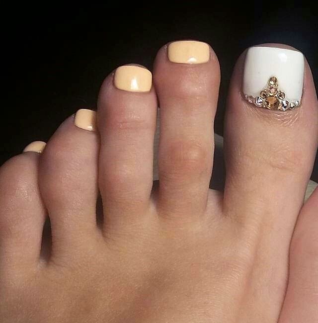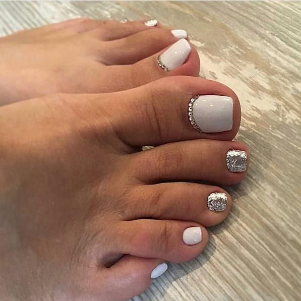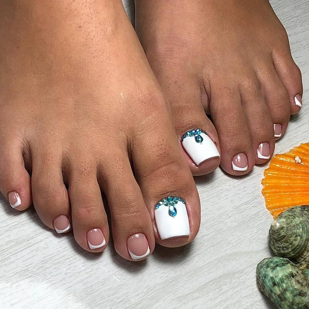 - Pédicure blanche avec strass