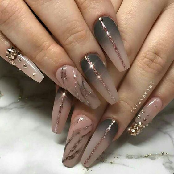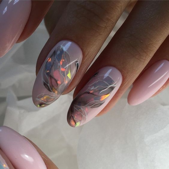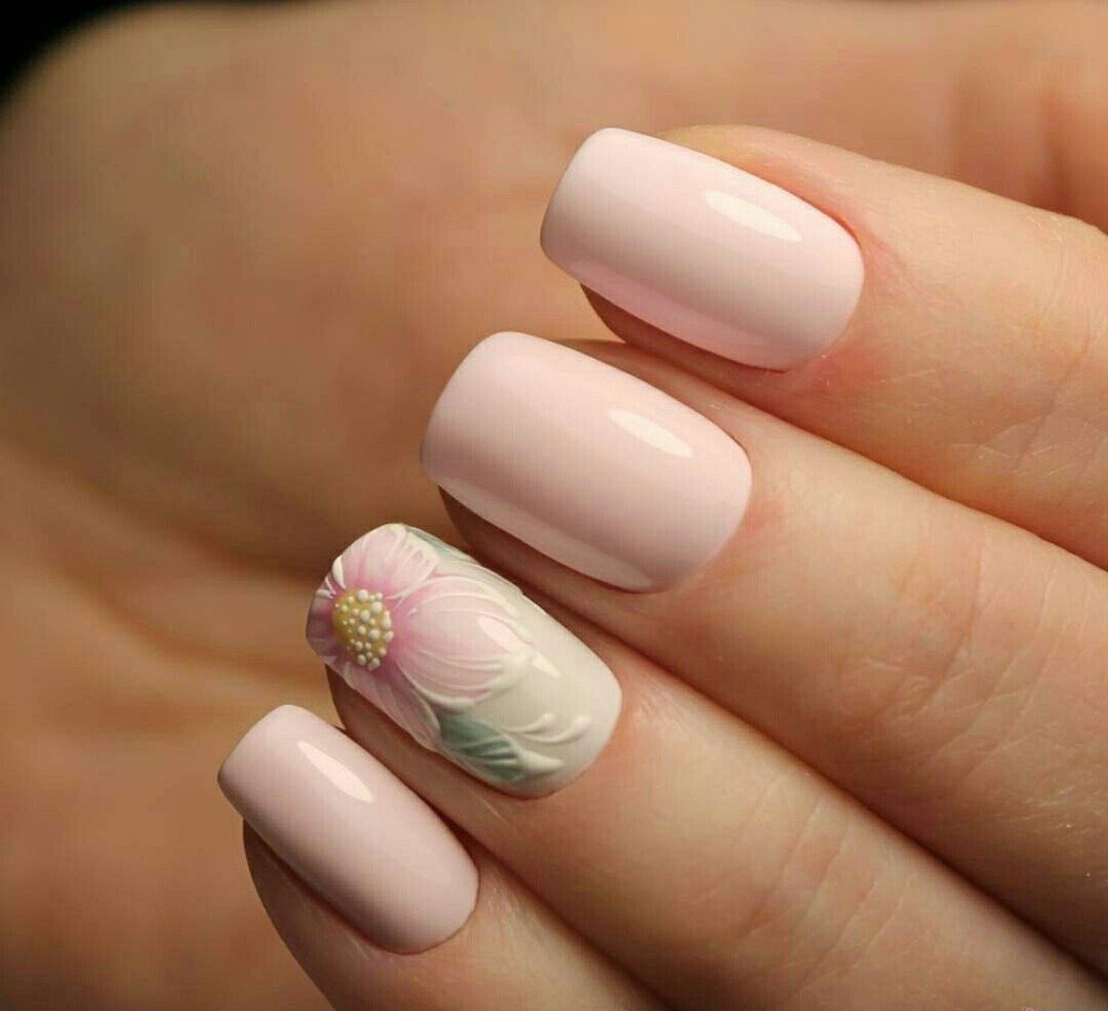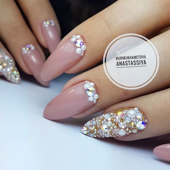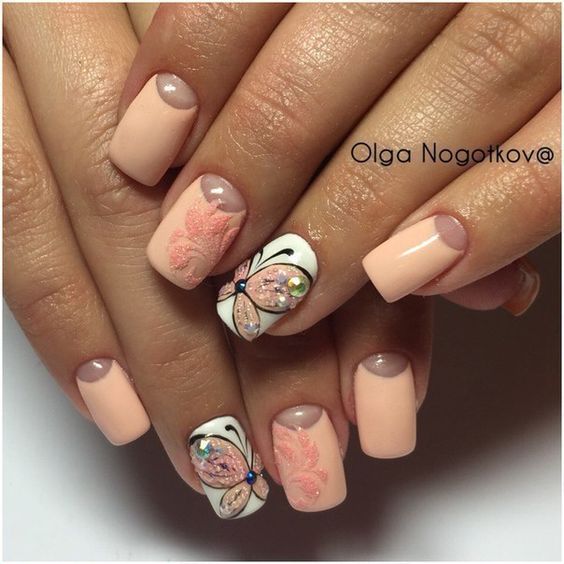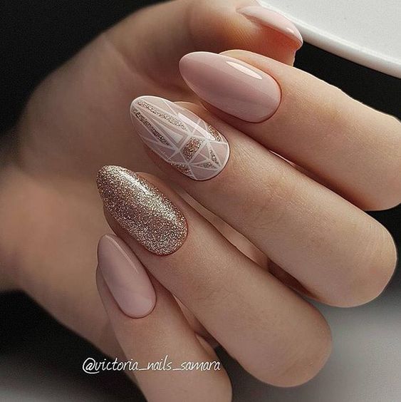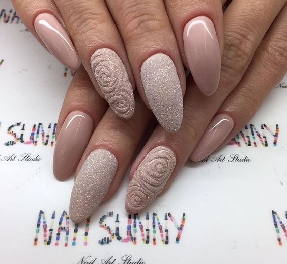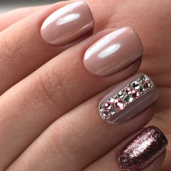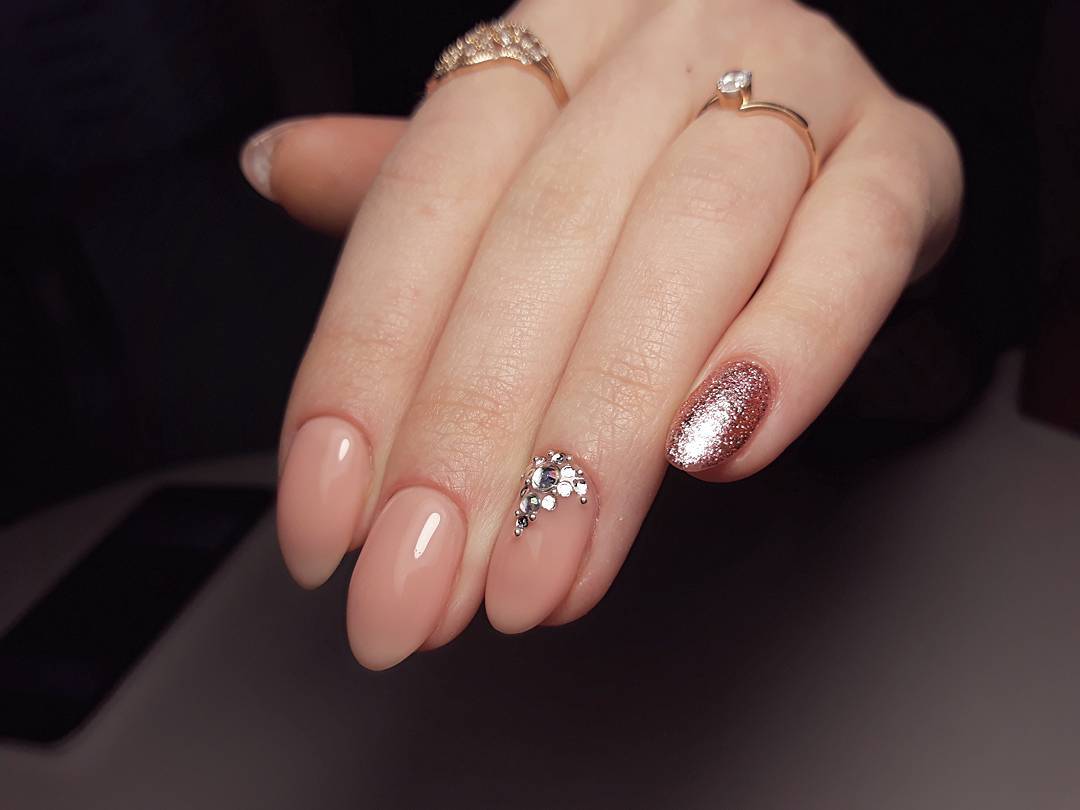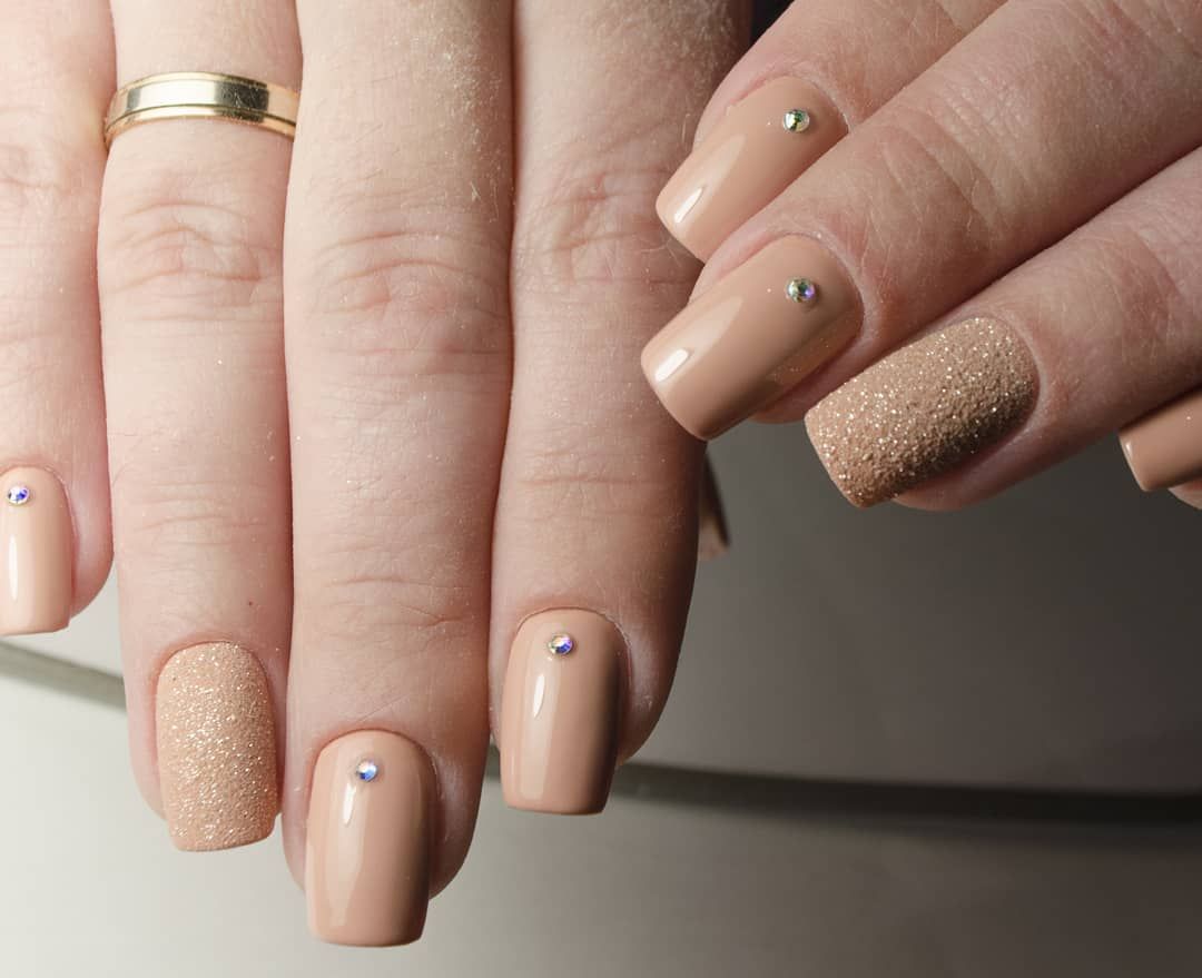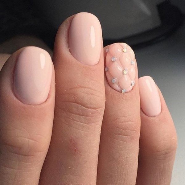 La manucure beige-rose est une option tout à fait romantique et mignonne. Il convient aux fiançailles et aux événements similaires. La gamme calme et discrète est toujours au top et s'adapte à tous les styles. Et pour rendre une telle manucure plus intéressante, il est impossible de se passer de décorations supplémentaires avec des strass ou des brillants.