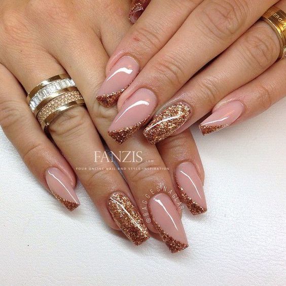 La manucure beige et or est une excellente solution lorsque vous voulez autre chose qu'un classique. Cette option a l'air fraîche et originale. Vous pouvez recouvrir les pointes d'or, dessiner une variété de formes géométriques, faire une sélection sous la forme d'un trou ou appliquer une impression léopard.