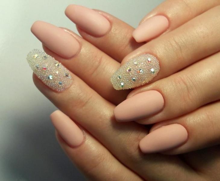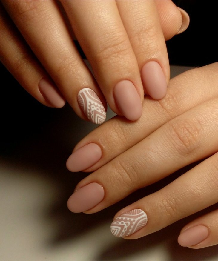 La manucure mate est une option assez à la mode. Il est couramment utilisé pour les ongles courts. Ce type de nail art a un look romantique et ajoute une tendresse particulière à votre style. La teinte beige de la texture mate est idéale pour la base de différents motifs. Il peut être combiné avec de la poudre acrylique et un frottement.