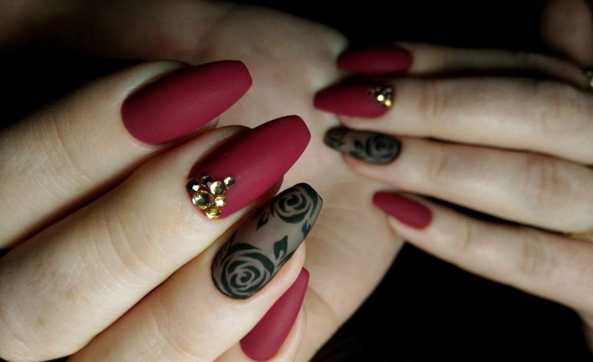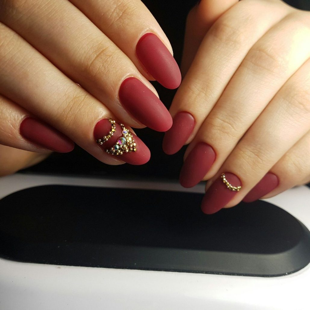 Le vernis Bourgogne peut présenter une saturation des couleurs différente, être brillant ou mat. La manucure mate paraîtra plus impressionnante sur les ongles longs, car ce n’est que dans ce cas que vous pourrez maximiser la profondeur de la couleur.
