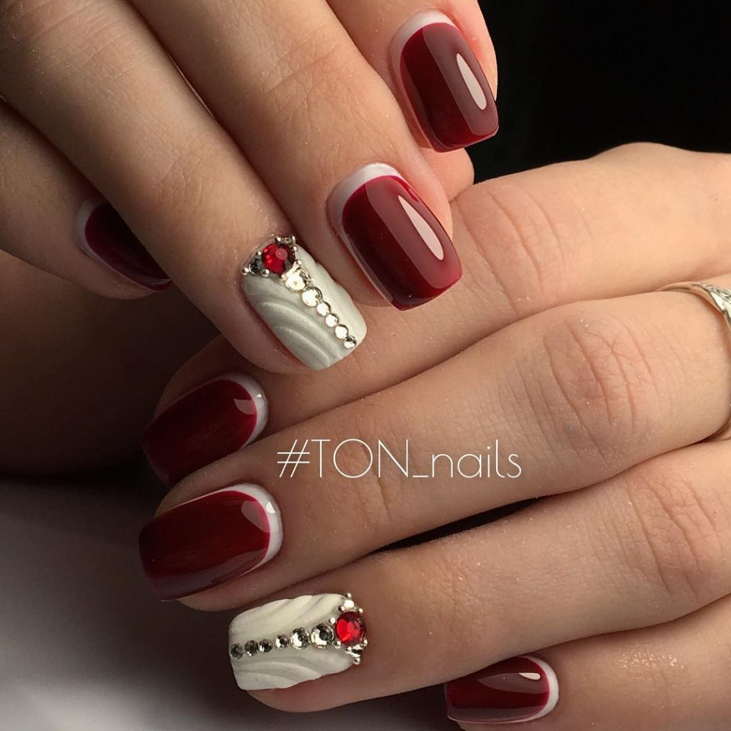 Même si nous parlons d'une couleur aussi saturée que le bordeaux, vous ne devriez pas avoir peur des expériences qui l'utilisent dans le nail art. La bonne combinaison avec d'autres teintes et décors créera une manucure élégante et lumineuse qui ne passera pas inaperçue.
