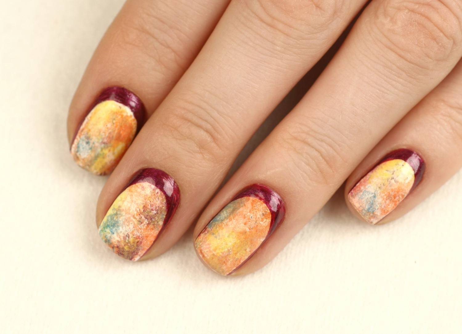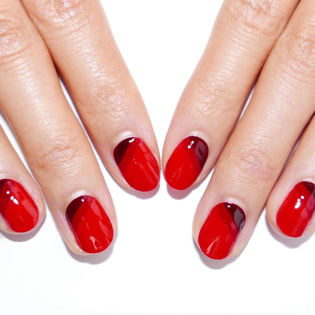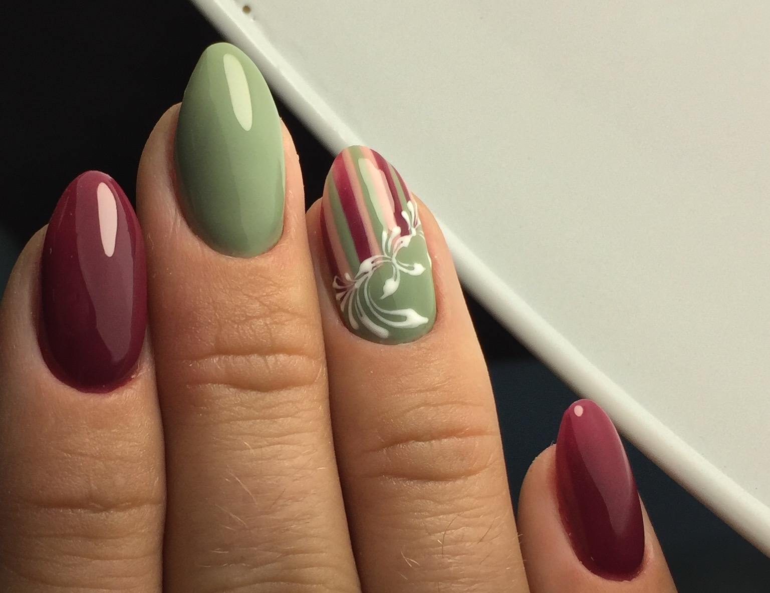 Ceux qui veulent une manucure plus légère peuvent combiner le bordeaux avec le beige, le rose ou tout autre choix parmi une palette de pastel.