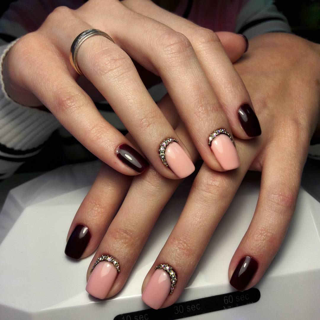Et le rose apportera tendresse et romance à la manucure. En combinaison avec le bordeaux, il paraîtra encore plus doux.
