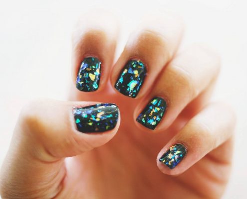 Manucure en verre cassé. Fragments d'ongle spectaculaires