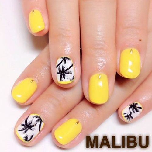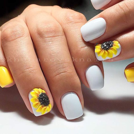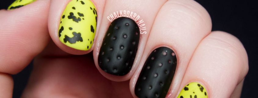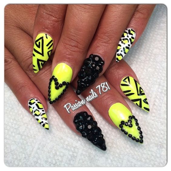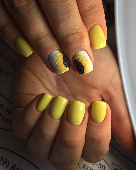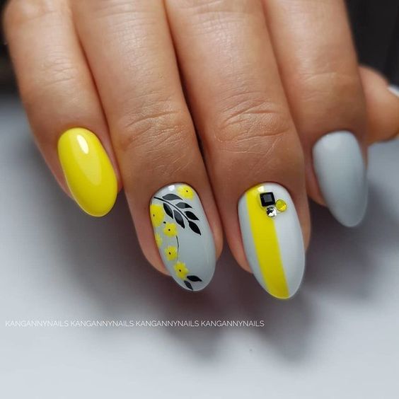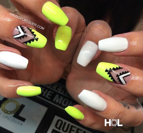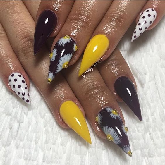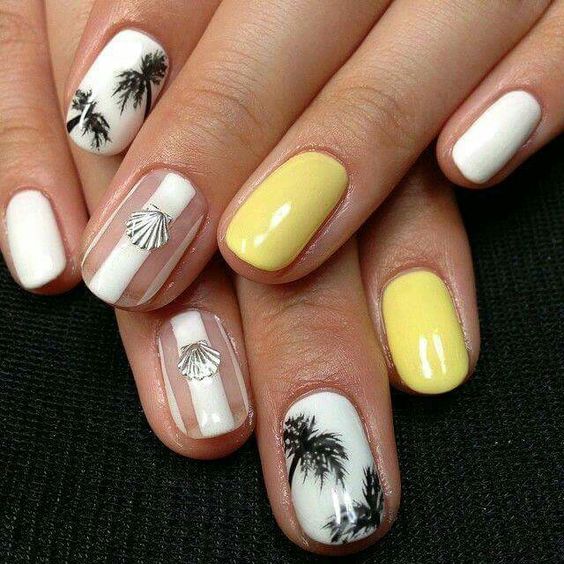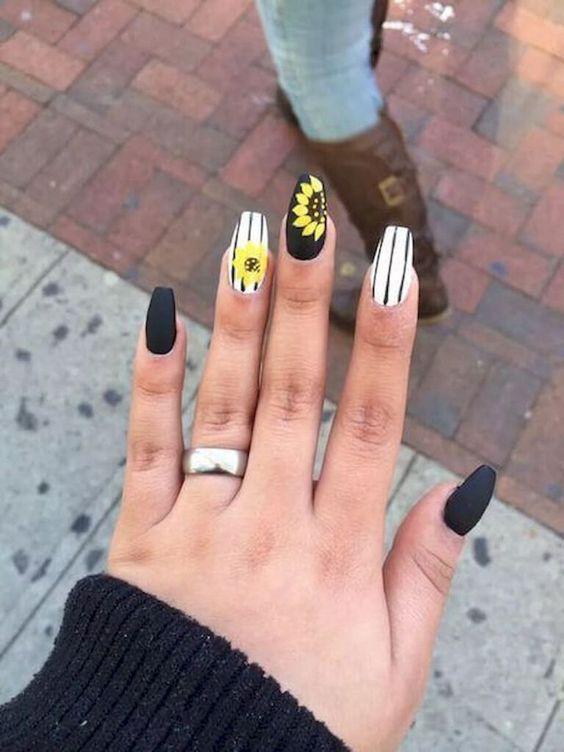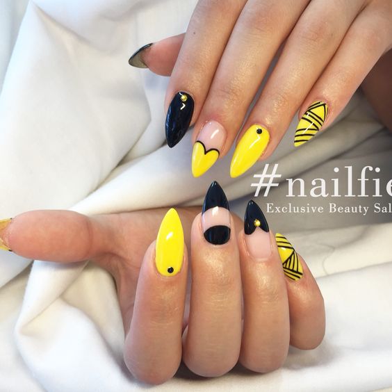 La combinaison de jaune, noir et blanc en manucure