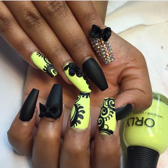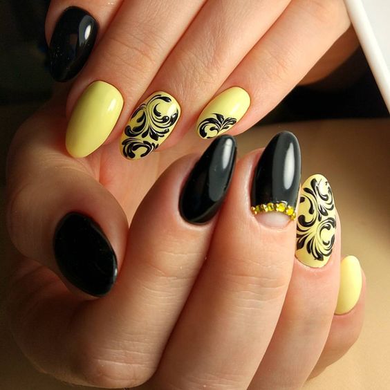 Manucure noire et jaune: 100 meilleures idées et nouveautés en matière de design
