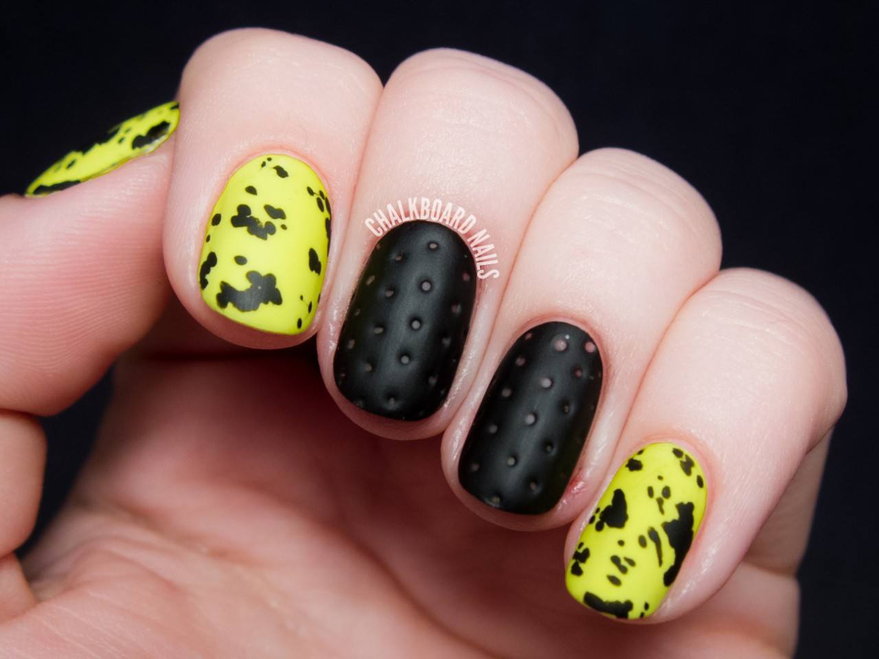 Manucure mate inégalée de couleur jaune-noir