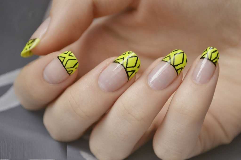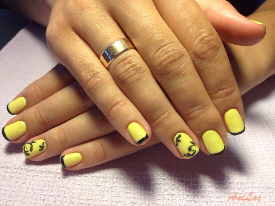 French manucure: design inhabituel dans les tons noir et jaune