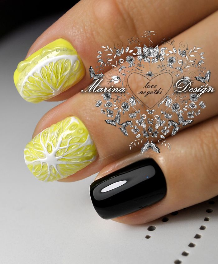Les meilleures idées de manucure avec vernis noir en duo avec des tons jaunes