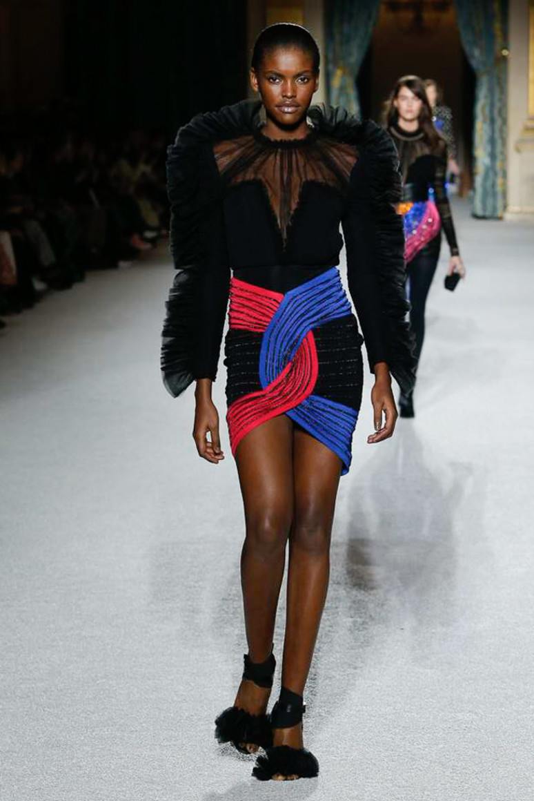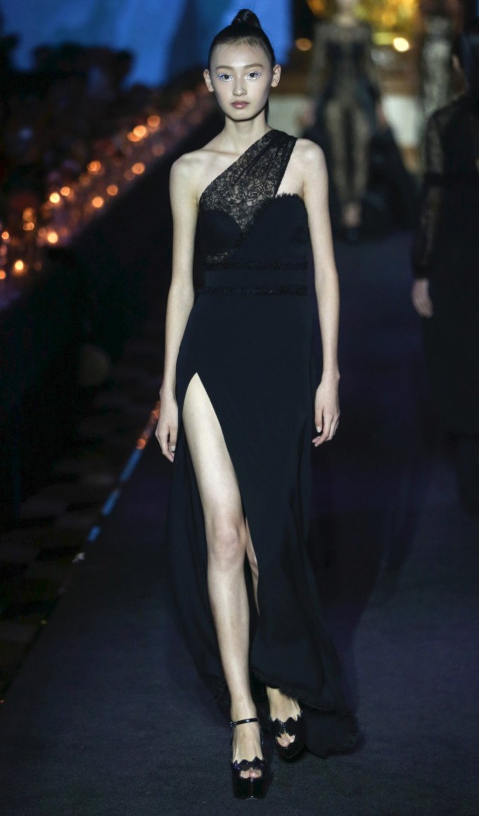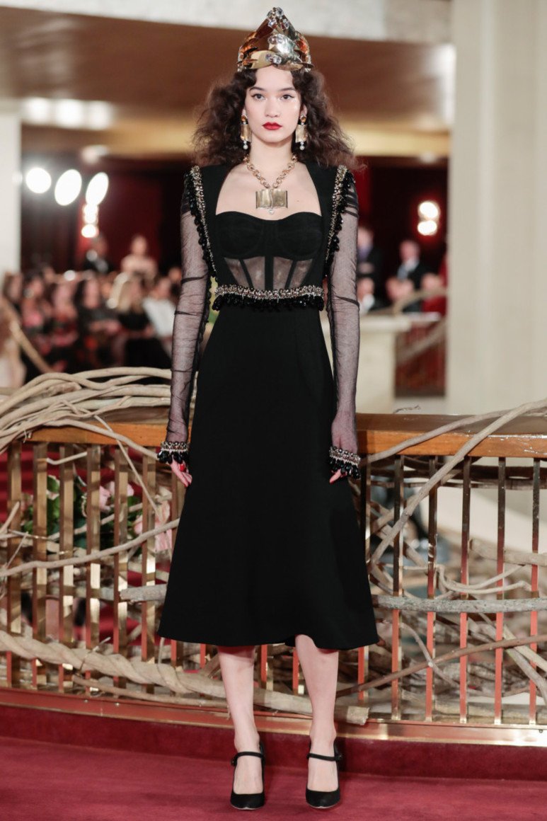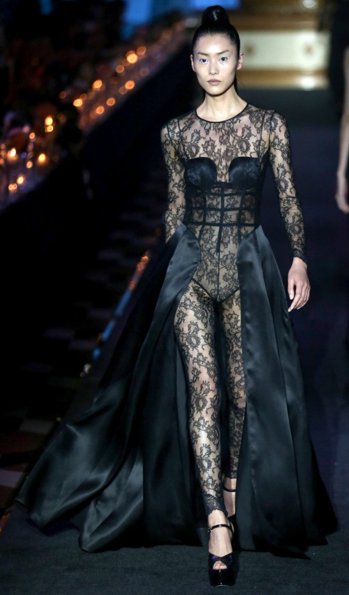 Le haut en dentelle dans une robe noire est une option courante chez de nombreux designers du monde. Seules les femmes minces avec de beaux seins peuvent se permettre ces produits inégalés, car rien ne se concentre plus sur le buste qu'un corsage en dentelle. Les notes franches dans l'image créent un effet saisissant.