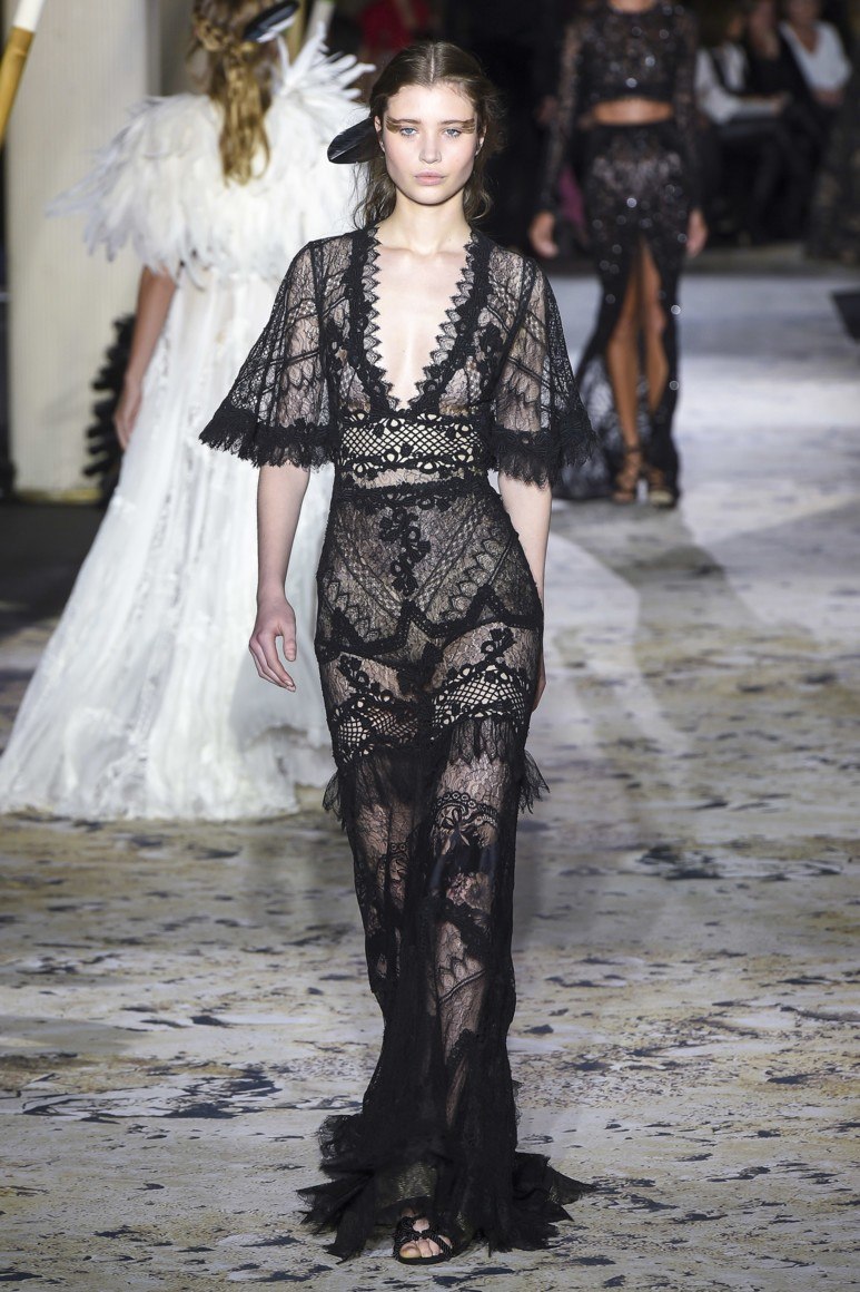 Robe longue en dentelle noire: des motifs voyants