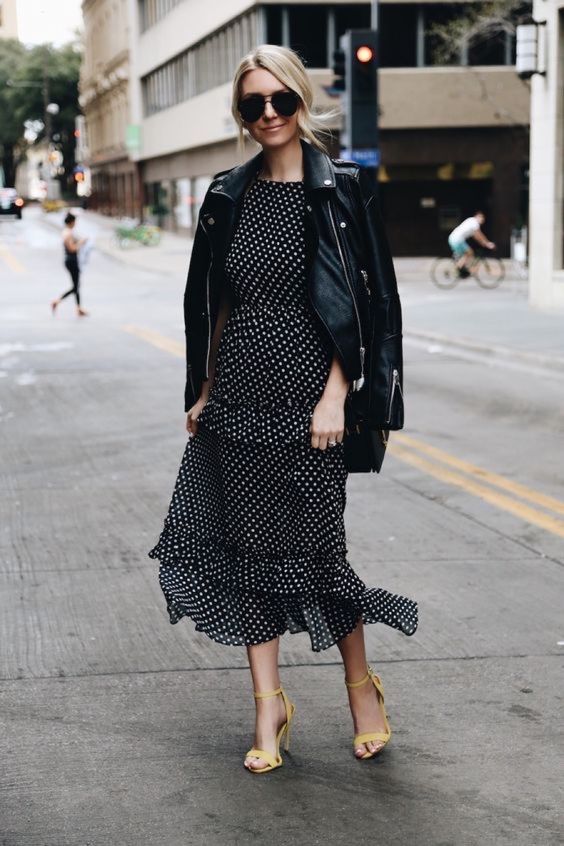 Pour la période plus froide de l'année, vous devriez acheter une veste en cuir, une veste en cuir, qui convient à presque tous les looks. L'option en noir aidera à créer un arc total élégant, et un produit coloré aidera à placer les accents de manière favorable. Pour une soirée fraîche, nous vous conseillons de choisir un grand cardigan ou une veste en jean.