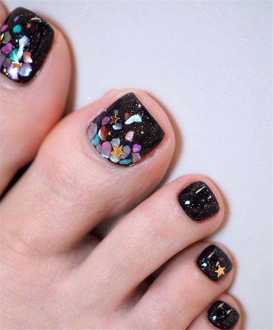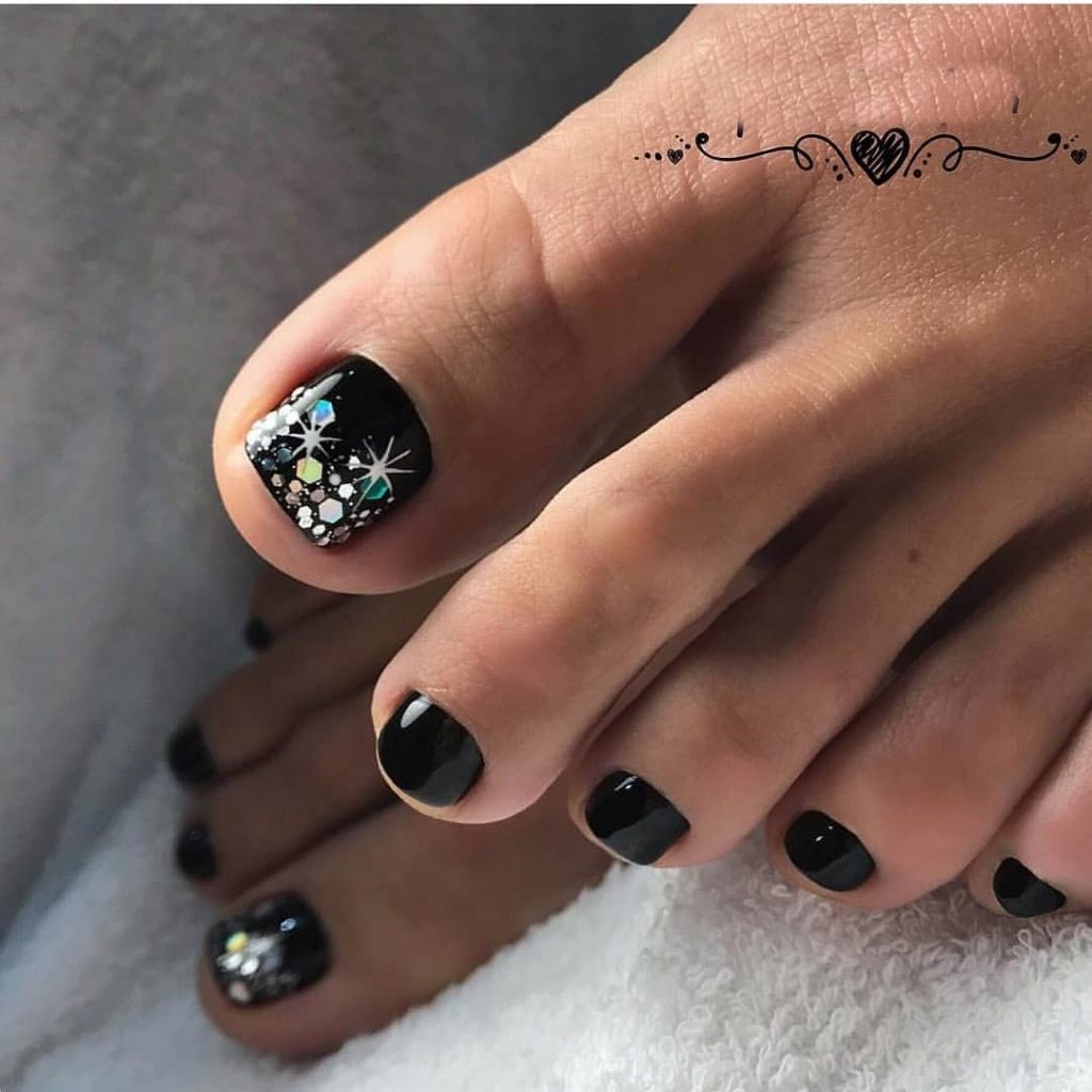 Pédicure à la mode noire: 2026 Idées illustrées