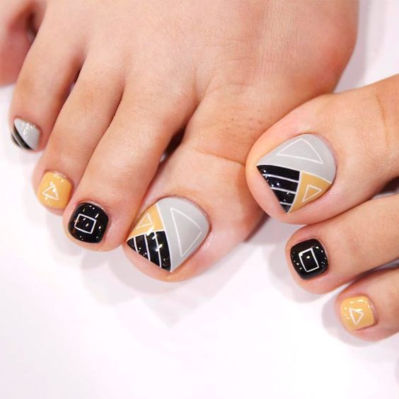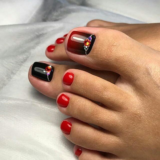 2026 ravit toutes les femmes avec ses nouveaux produits et tendances. Ces nouveaux produits n'ont pas contourné les pédicures. La tendance de l’année a été la pédicure noire, combinée à des teintes différentes. Par exemple, la vignette est recouverte de vernis beige ou rouge et un trou noir est fait à la base de l’ongle. Les ongles restants sont recouverts de vernis noir. Il est également à la mode de faire une pédicure noire en 2026, où une ligne restrictive de connexions de bleu et de noir est faite sur le pouce. La couleur bleue peut remplir le clou sans nom. La ligne est généralement blanche ou argentée. Mais le plus original et le plus populaire était l’option de design, réalisée dans le style des formes géométriques. Cet ornement est situé sur la vignette, car il y a plus d'espace pour la photo. Vernis ou peintures blanches, noires et beiges, les triangles sont disposés dans un ordre chaotique. Les ongles restants sont recouverts de noir.
