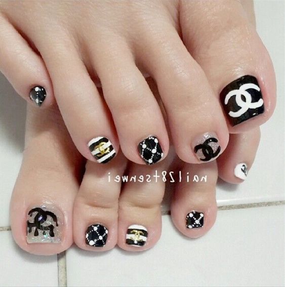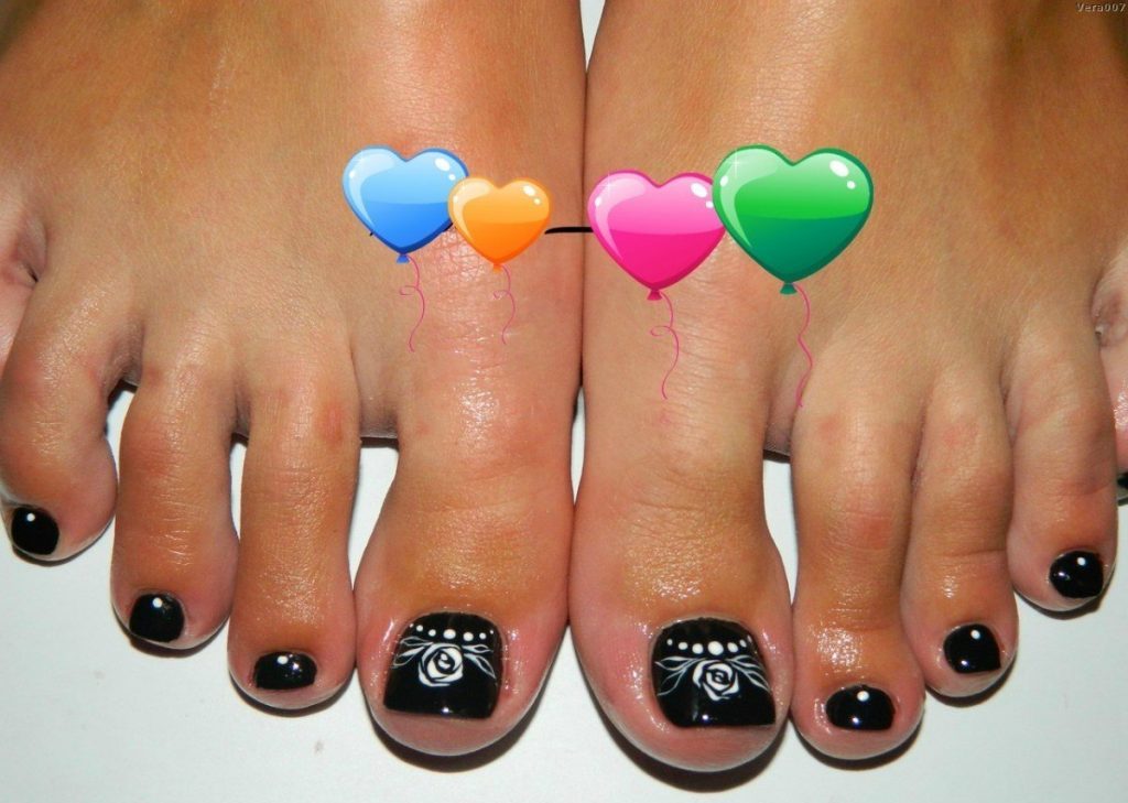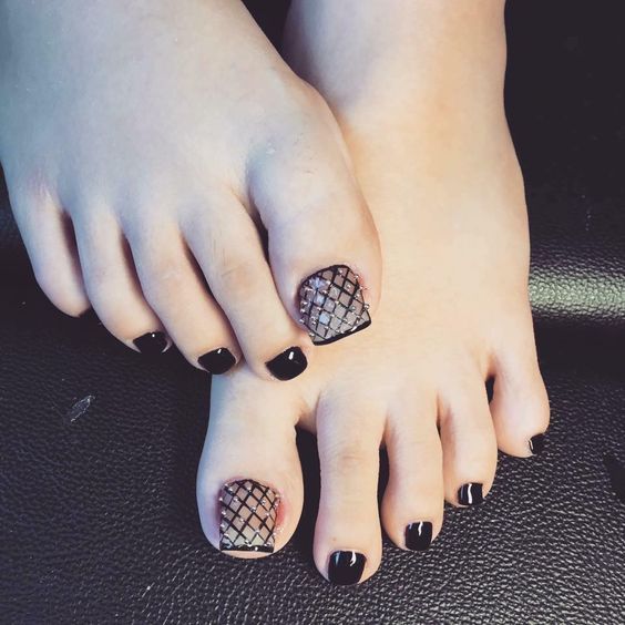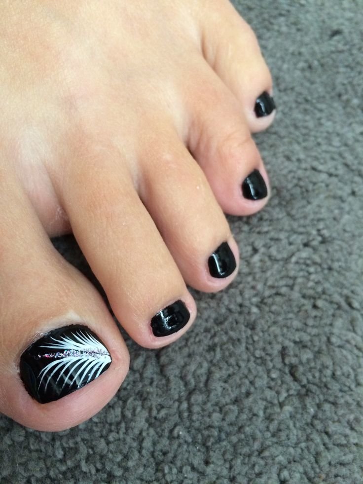 - Pédicure noire avec dessin