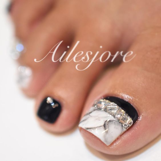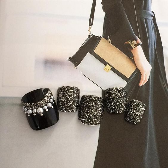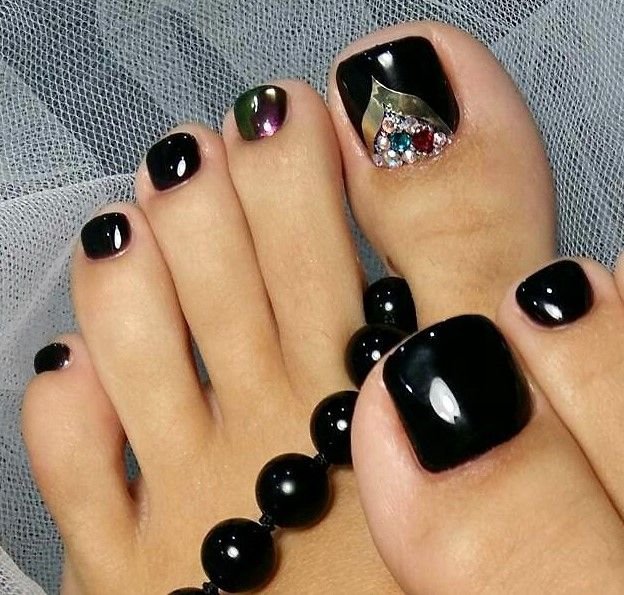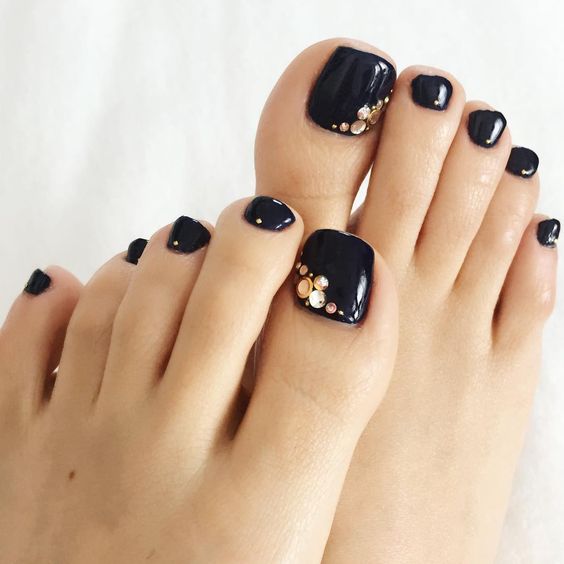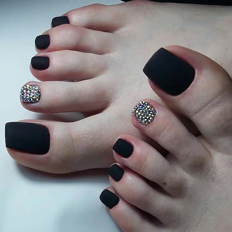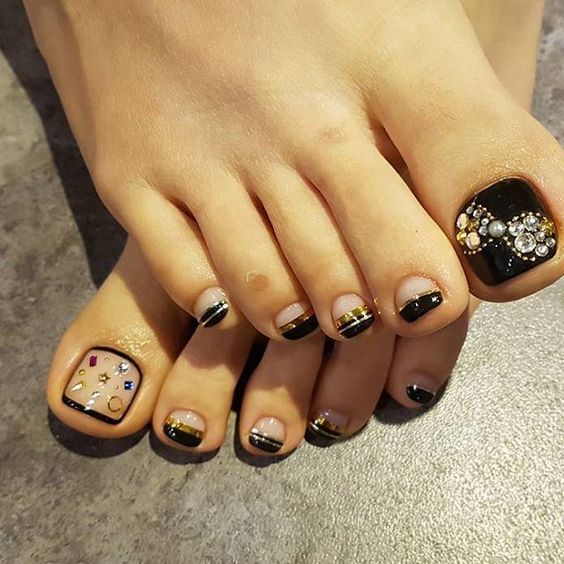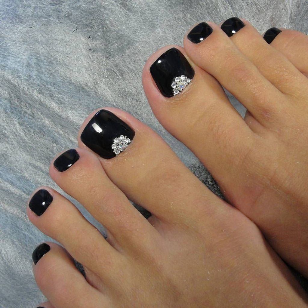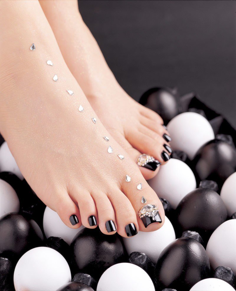 - Pédicure noire avec strass