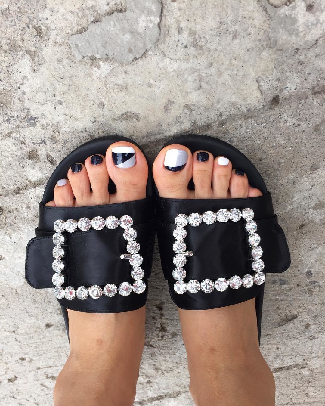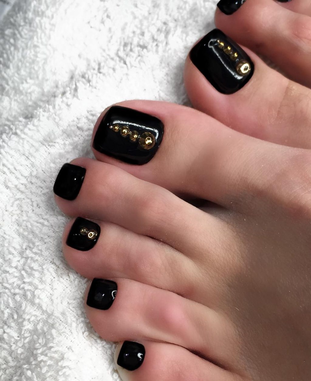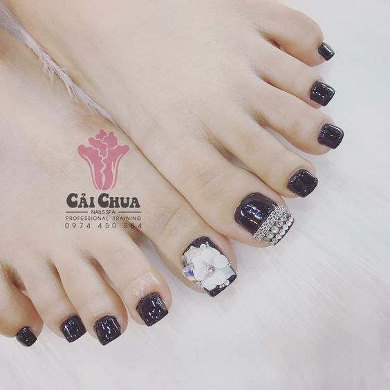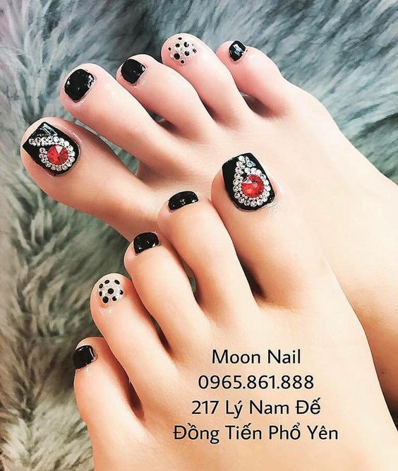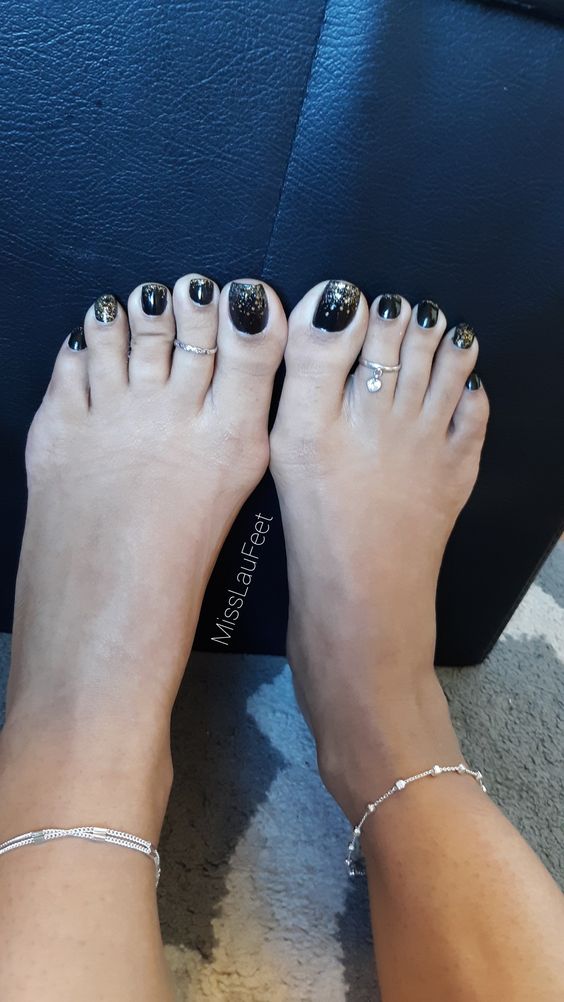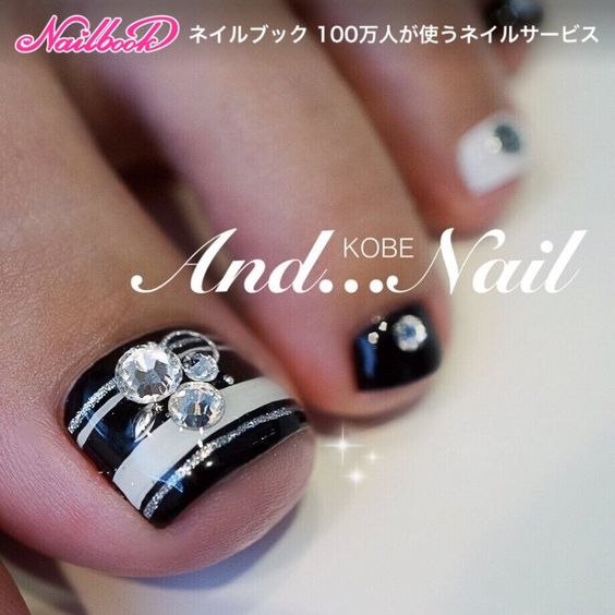 - Pédicure noire avec strass