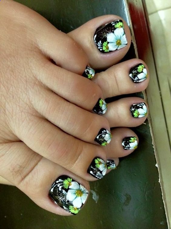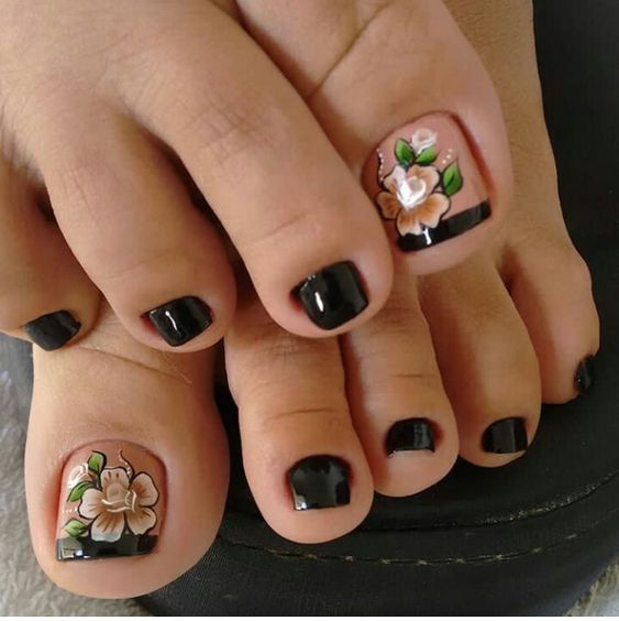 - Pédicure noire avec feuille