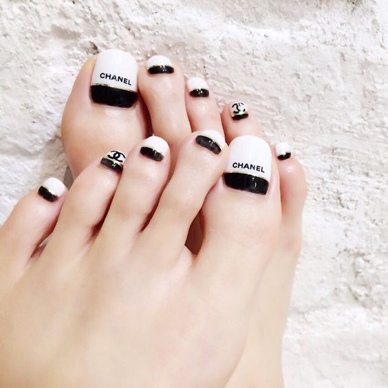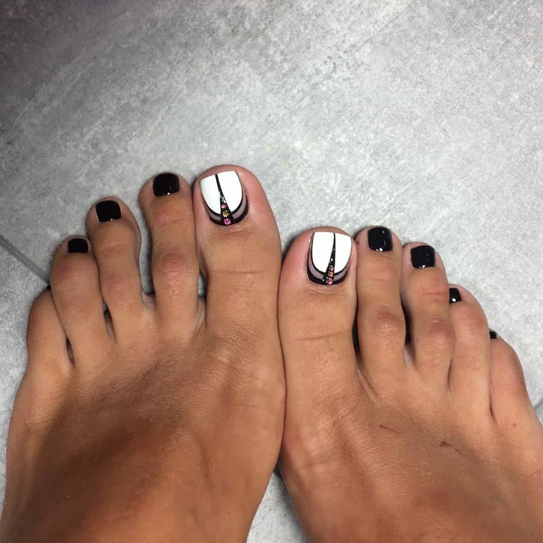 La combinaison d'un pédicure noir avec une teinte blanche