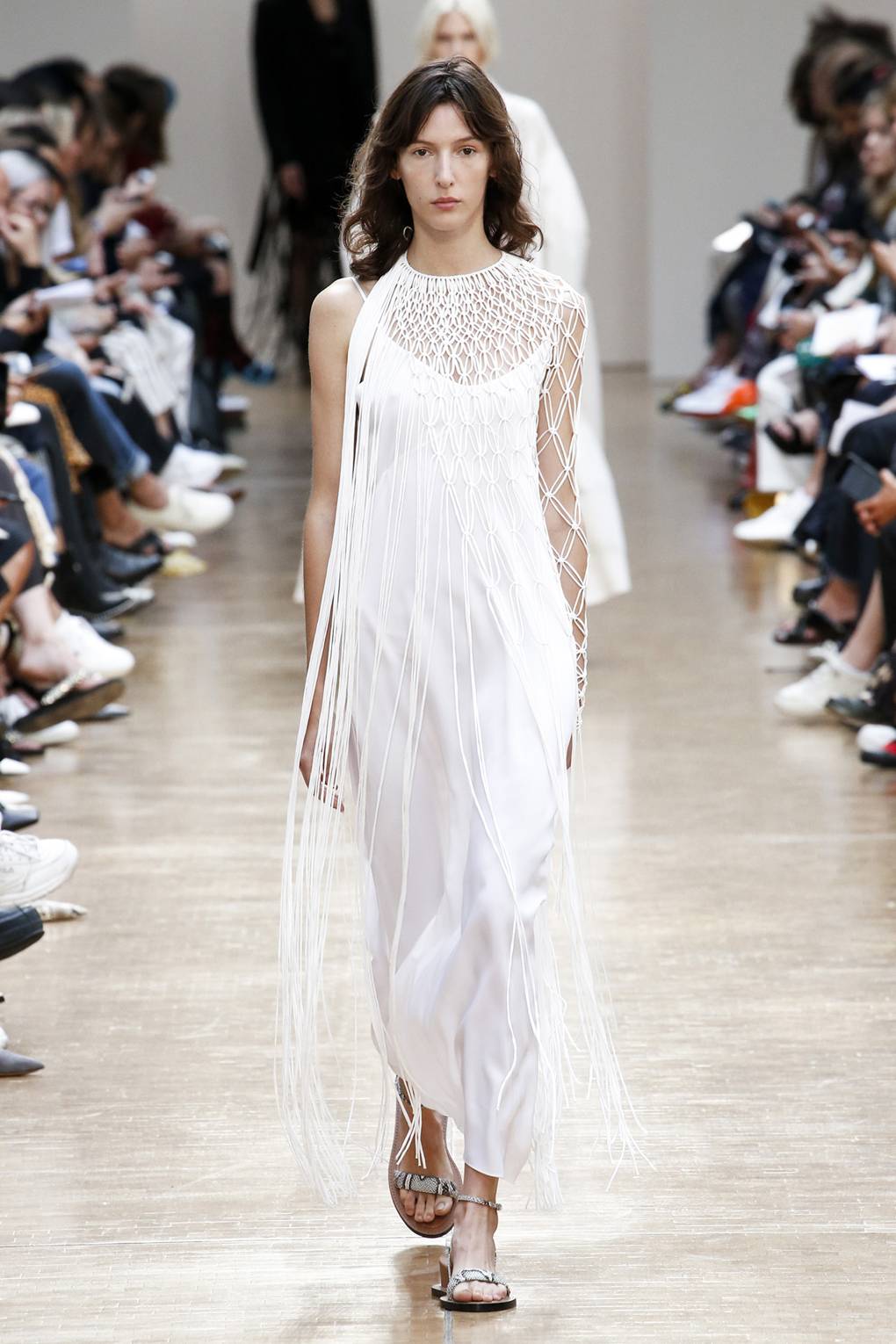 Le ton beige de cette année est très populaire, comme toutes ses nuances. Dans presque chaque collection de printemps, vous pouvez voir des nuances de beige: du plus clair au plus foncé. Certains tons ont des noms très inhabituels et pathétiques, par exemple, «huître du Pacifique» ou «herbe à plumes sèche». La dernière fois que cette teinte était aussi demandée il y a 10 ans. Probablement, pendant cette période, nous étions tous fatigués des teintes vives et saturées, et je veux des tenues plus calmes et modérées.