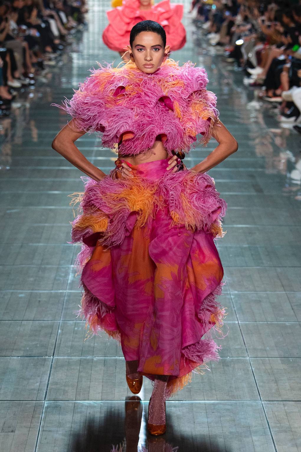 Si vous choisissez des tenues pour le printemps 2026, assurez-vous de porter une attention particulière aux vêtements décorés de franges ou de plumes. Un tel élément peut décorer non seulement des produits, mais aussi des bottes ou un sac à main. Une telle tendance a été soutenue par des marques telles que Cushnie, Givenchy, Valentino Quinn, Loewe, Marc Jacobs, Rochas et Philipp Plein dans leurs spectacles.
