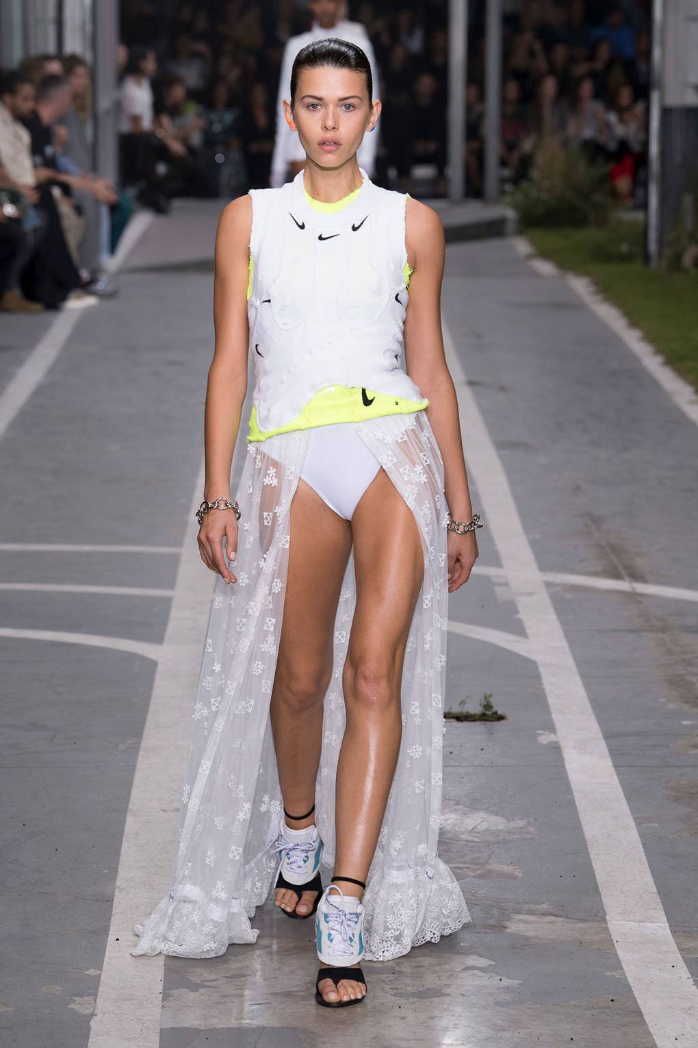 Des chemisiers, des robes, des jupes et même des pantalons avec des éléments en dentelle ont été vus pour la première fois sur le podium lors des défilés de collections de croisières et étaient uniquement destinés au voyage. Mais après seulement quelques mois, la dentelle dans les vêtements a commencé à apparaître dans les collections de créateurs tels que Christopher Kane, Victoria Beckham et Erdem. Au printemps 2026, la dentelle apparaît non seulement sur les robes de style romantique ou professionnel, mais aussi sur les vêtements de sport. Mais ce n’est pas tout: un costume de pantalon de travail peut également être fait de dentelle délicate et élégante. Une combinaison de sport avec des éléments de dentelle élégante semble très inhabituelle et fraîche.