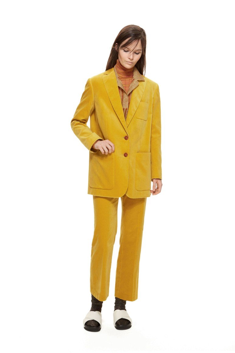Le feuillage jaune et l’érable d’automne sont les nuances de l’automne utilisées par de nombreux designers. Les produits fabriqués dans cette palette de couleurs attirent tout simplement instantanément et fascinent. Les vêtements d'extérieur aux teintes de l'érable et du feuillage jaunes de l'automne vous permettent de faire une séance photo magnifique à l'automne parmi le feuillage jauni qui tombe. Ces nuances, bien que non flashy, peuvent toujours ajouter de la luminosité à l'image. Nuances de compagnons: bleu, beige, orange et marron.