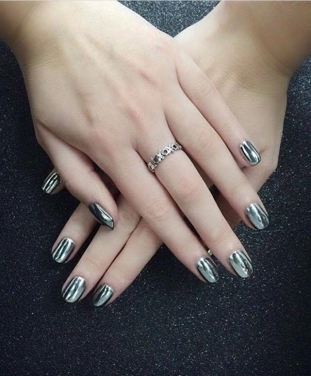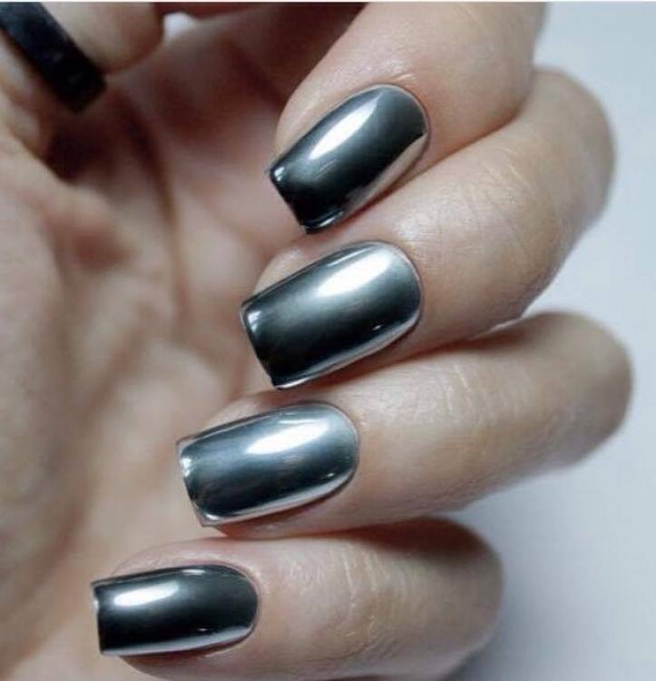 L'application sur les ongles de laque miroitante crée un effet étonnant. À première vue, quelqu'un peut dire qu'une telle manucure n'est pas acceptable au travail, mais les concepteurs recommandent en 2026 de s'éloigner des normes et des stéréotypes. Bien sûr, la manucure en gomme laque la plus populaire parmi les femmes d’affaires est simple et convient à une tenue de bureau. Un revêtement métallique monophonique en nacre répond également à ce critère.Une telle manucure à effet métallisé convient à une femme d’affaires audacieuse et résolue.