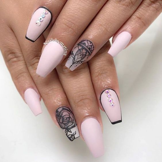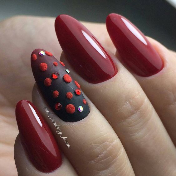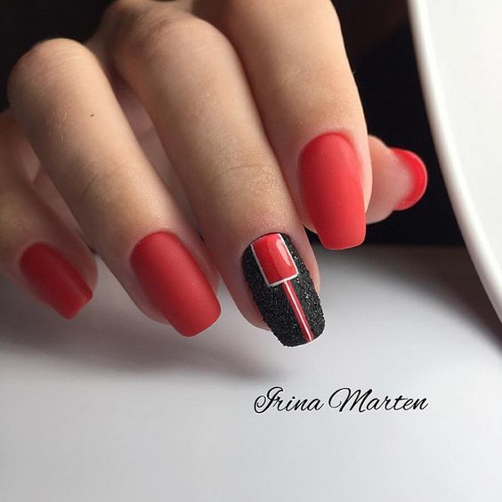 Le ton mat a été populaire pendant plusieurs années. Il donne facilement de la rigueur aux ongles, tout en mettant en valeur la féminité et la sophistication. Si vous le combinez avec une finition brillante, en ajoutant des pierres de strass ou irisées, ce sera l'idée parfaite à la mode pour un style professionnel. Pour une telle manucure, vous pouvez choisir à la fois des couleurs sombres et des couleurs plus claires. En effet, dans un design mat, toutes les couleurs de la gomme laque auront l’air sobres, élégantes et strictes.
