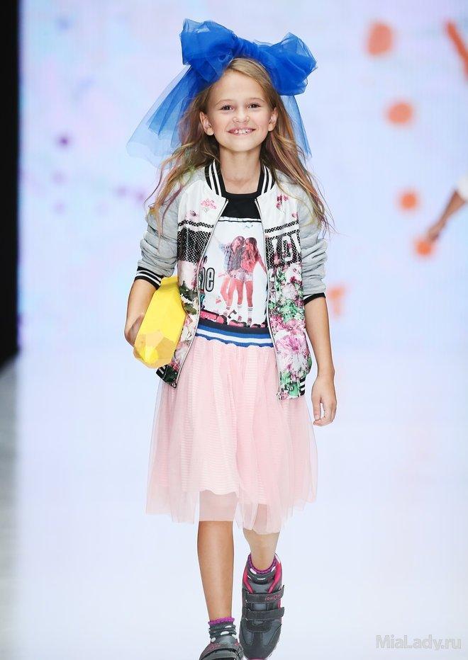 Les filles sont des petites dames. Ils personnifient l'innocence et la tendresse. Par conséquent, les concepteurs conseillent: si vous n’avez pas choisi un arc «mère-fille», où la tenue de la fille sera une copie conforme de l’image de ma mère, choisissez des tenues aux couleurs rose pastel. Si vous souhaitez obtenir une image lumineuse pour votre princesse, les concepteurs vous suggèrent de choisir un kit en lilas, jaune, orange, rouge, violet ou vert. Cette année, dans les vêtements à la mode pour les filles, il est nécessaire de mettre en valeur les volants, les empiècements en dentelle, les imprimés floraux, les vêtements en jean et les couleurs à la mode pour adultes. Les strass, les paillettes, les appliqués, les dessins et les broderies sont utilisés pour la décoration.