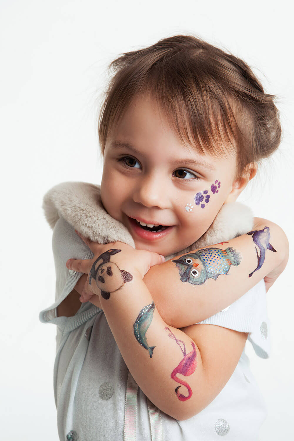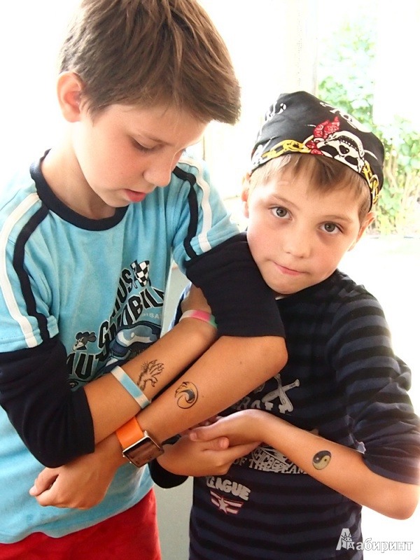 Le tatouage pour enfants est une décoration temporaire avec une image du corps d’un enfant. Un tatouage pour enfant, qu’il s’agisse d’un autocollant ou d’une décalcomanie, ou d’un motif fait avec un stylo-colle, une aquarelle ou un henné - toutes ces options sont des décors temporaires. Le plus souvent, les enfants préfèrent l'appliquer pendant les vacances d'été. Un tel tatouage durera de deux jours à deux semaines sur le corps d'un enfant. Fondamentalement, les "tatouages" sont lavés avec le temps eux-mêmes. Mais si vous n'aimez pas quelque chose, les experts vous proposeront un outil spécial pour le supprimer.