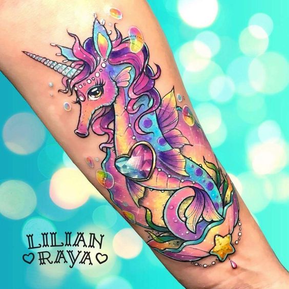 Comment se passer des personnages de contes de fées modernes? Le tatouage de héros comme une licorne, une princesse, une petite sirène ou une gentille sorcière plaira certainement à une belle demoiselle.