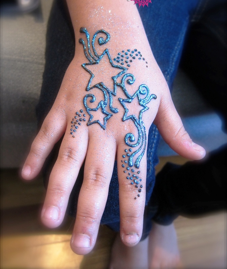Un tatouage au henné pour les enfants dure beaucoup plus longtemps qu'un tatouage régulier sur le corps. Ces tatouages sont très populaires dans les stations balnéaires. Avec un tatouage au henné spécial, vous pouvez aller de deux à quatre semaines, puis un tel motif disparaît sans laisser de trace du corps. Une condition préalable aux tatouages au henné pour enfants est que la composition doit être naturelle, exempte d’impuretés chimiques et que la réaction du corps aux allergies doit être vérifiée pour le henné lui-même.