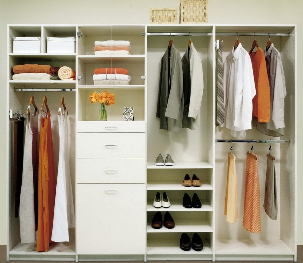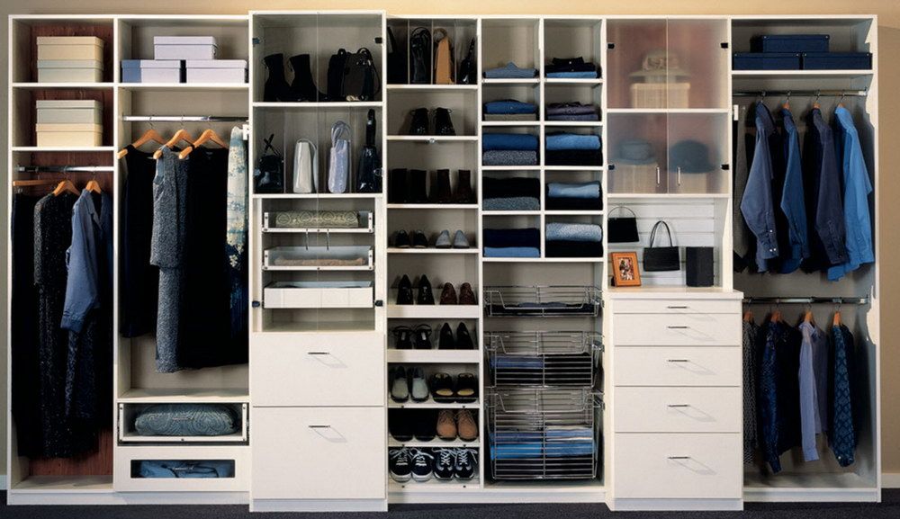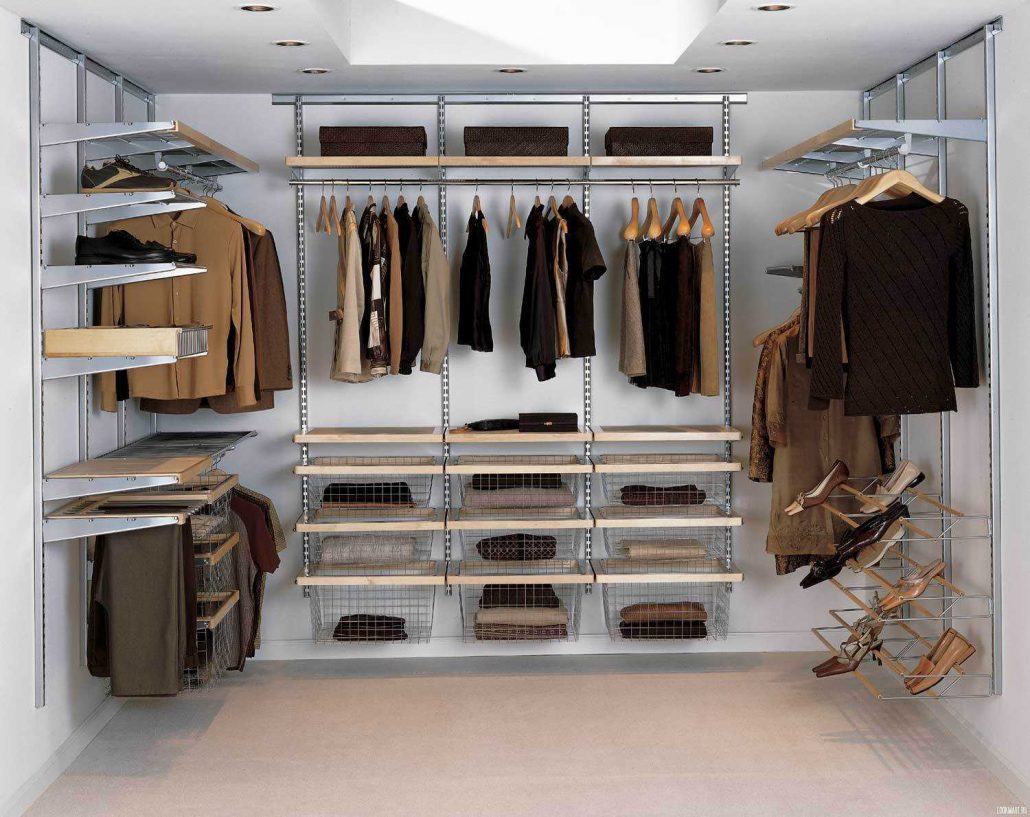 Les systèmes de stockage peuvent être achetés ou fabriqués indépendamment. Pour que toutes les choses soient bien placées, vous devez calculer le nombre et la taille des compartiments requis. Par exemple, pour les femmes, il est important que la hauteur des cintres permette de ranger ici ses robes, y compris celles qui sont longues. Par conséquent, ils doivent être au moins de 1,8 mètre, 1,2 mètre suffit pour le stockage des vestes pour hommes, la largeur des étagères ne doit pas dépasser 30 à 35 cm, la largeur des épaules pouvant affecter la profondeur de l'armoire. Par conséquent, il est généralement égal à 50-70 cm.