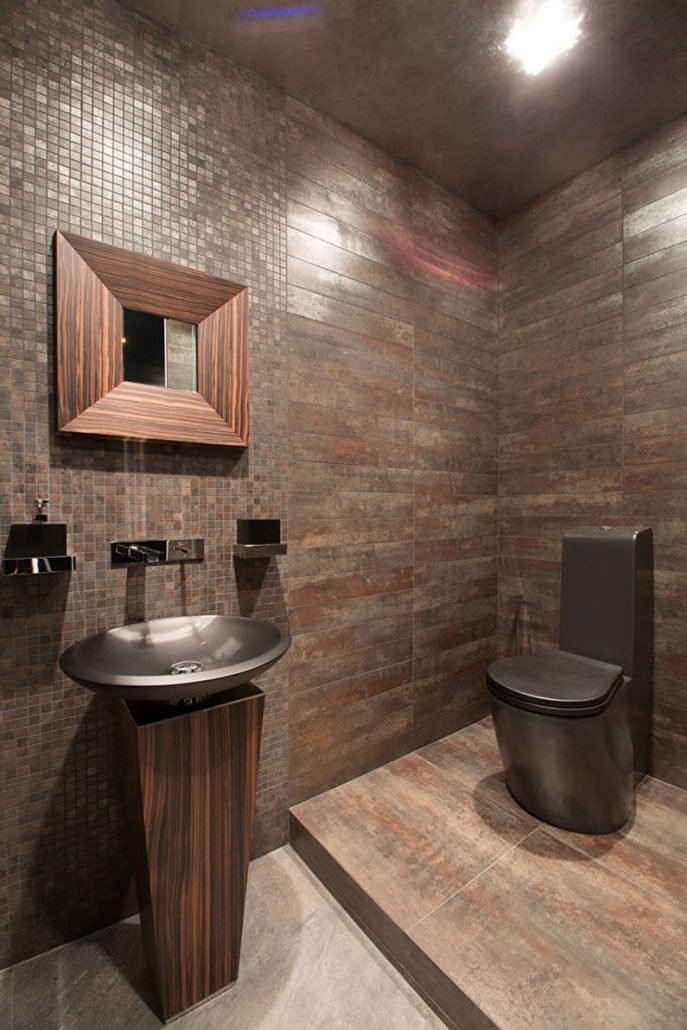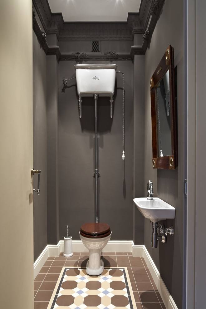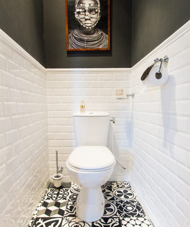 Un espace supplémentaire donnera à la petite toilette un plancher en vrac qui ressemble à du brillant. 6 ou 8 carreaux de céramique au charbon avec un petit motif seront l’option idéale pour finir le sol dans une petite toilette. Évitez les ornements volumineux et les grands motifs qui réduisent visuellement la toilette.
