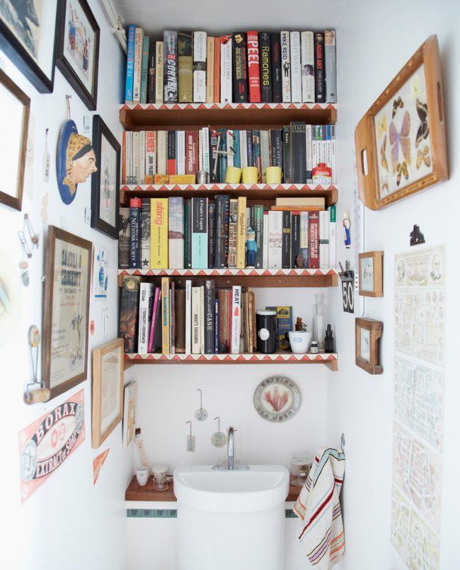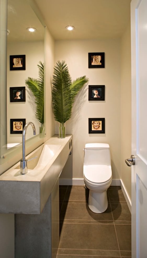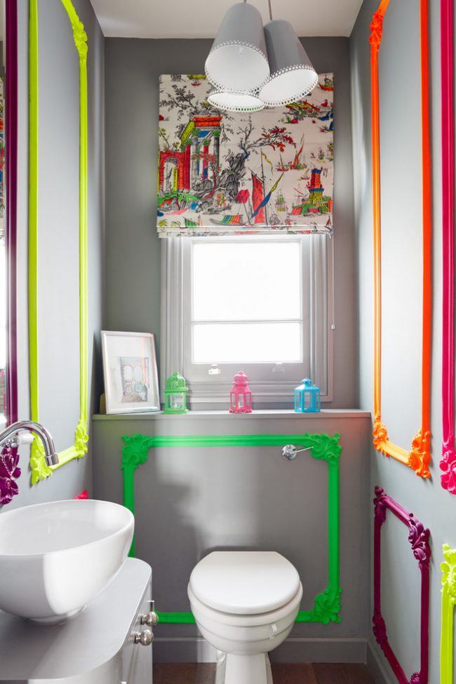 Pour les petites toilettes, les organisateurs pour les serviettes de forme irrégulière, les montages de formes non standard, les porte-savons, les miroirs et les plantes d'intérieur ne nécessitant pas beaucoup de lumière (ficus, cactus, cyperus) constitueront des éléments de décoration pratiques et originaux.