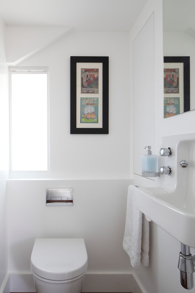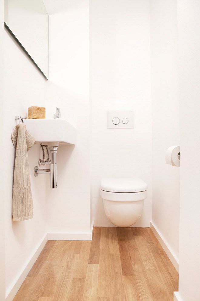 Style minimalisme dans une petite toilette.