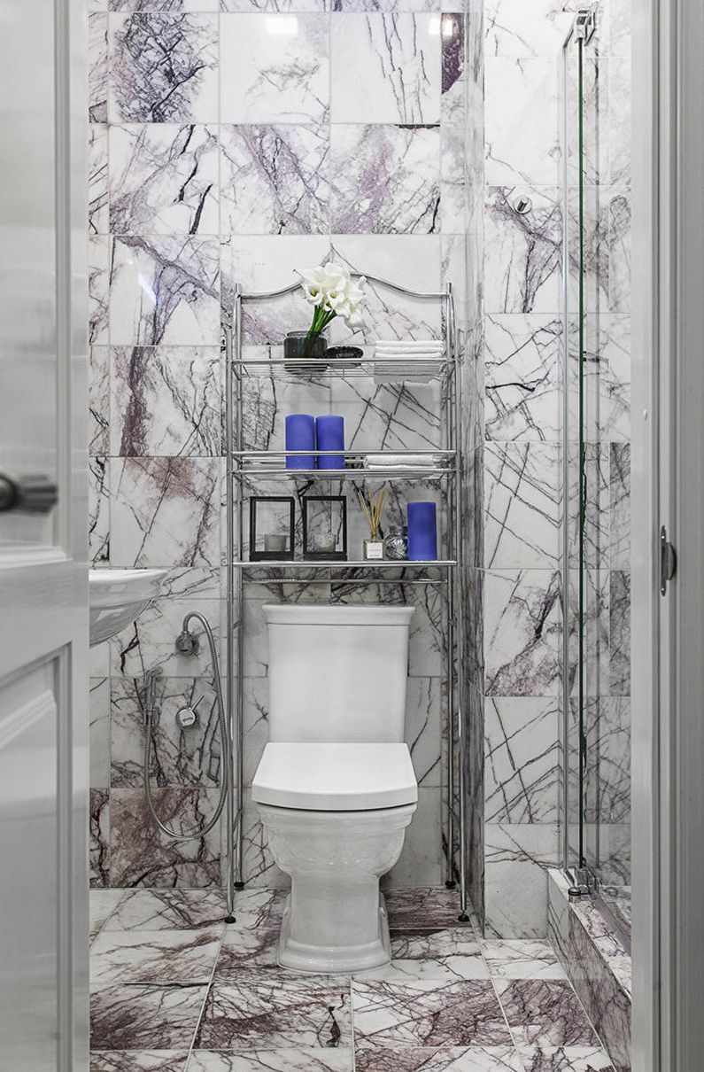 Les erreurs les plus courantes lors de la création d'un dessin de petite toilette sont l'absence d'équilibre général, une abondance de décor et une palette de couleurs très vive. Nous examinerons ci-dessous les instructions de style qui s’intègrent harmonieusement dans une petite zone de la pièce.