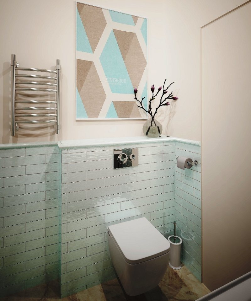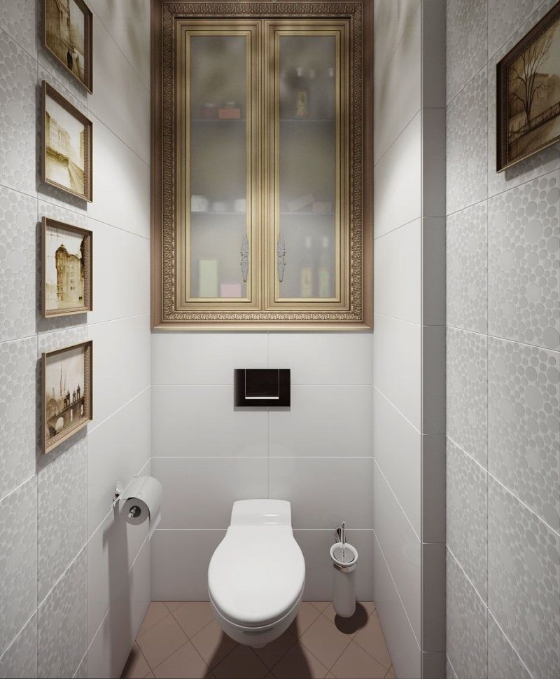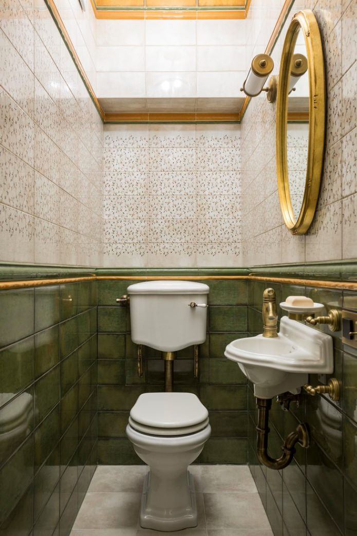 L'espace supplémentaire et la légèreté pour une petite toilette peuvent être donnés par des couleurs claires en combinaison avec l'élégance de chaque pièce. Il faut absolument faire attention à la décoration et aux textiles. Les tapis en lin et les serviettes, les mosaïques et les peintures, qui comprennent des ornements discrets, ainsi que des éléments floraux, devraient être préférés.